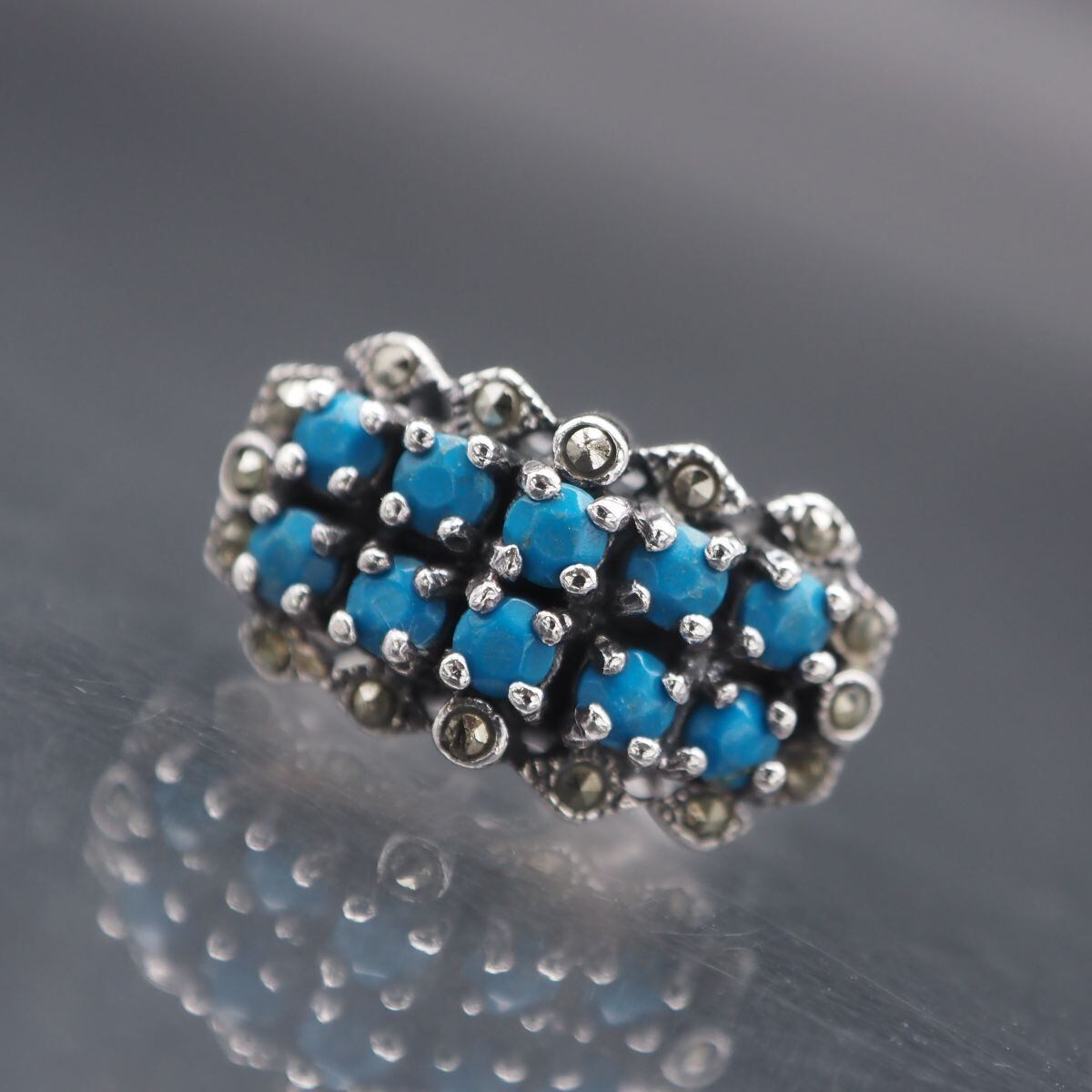 G630 ターコイズ トルコ石 マーカサイト マルカジット 925刻印 リング デザイン シルバー 指輪 ヴィンテージ 12月誕生石 12号
