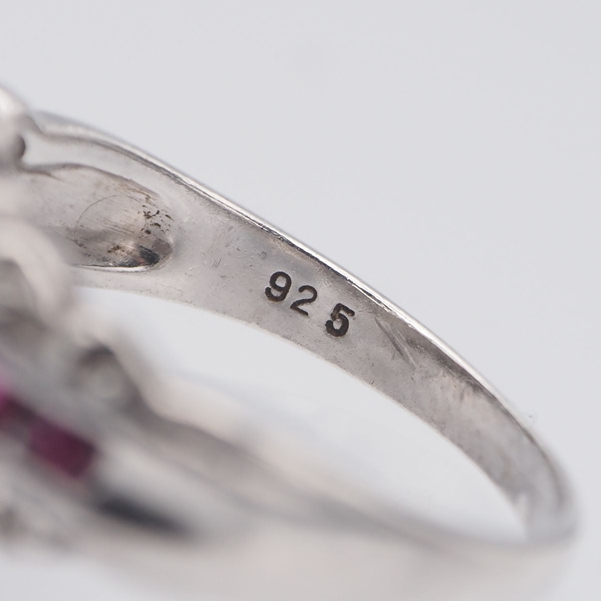 G661 ルビー? ピンクスピネル? 925刻印 リング デザイン シルバー 指輪 17-18号