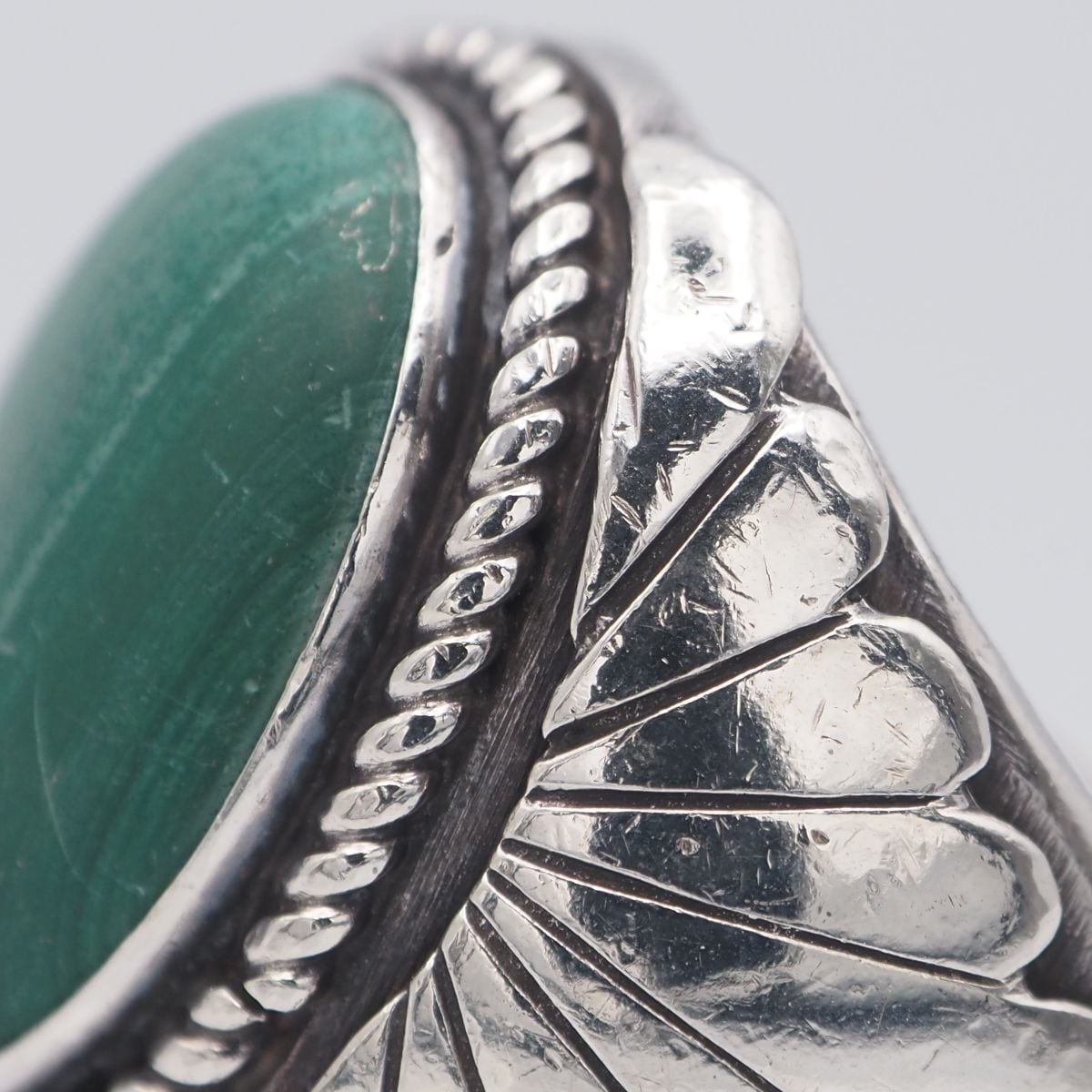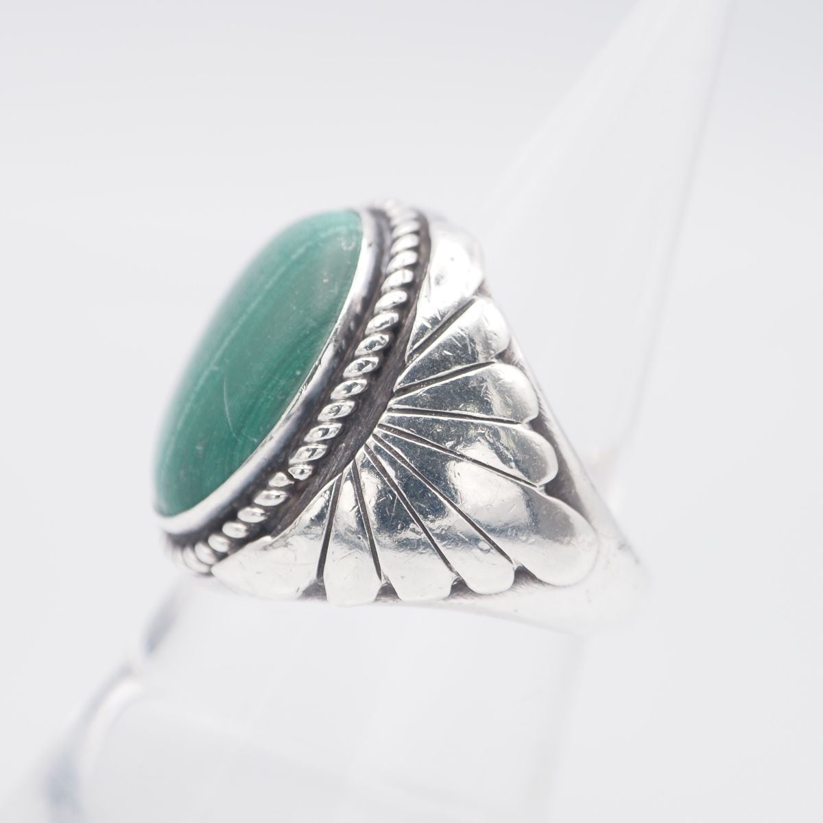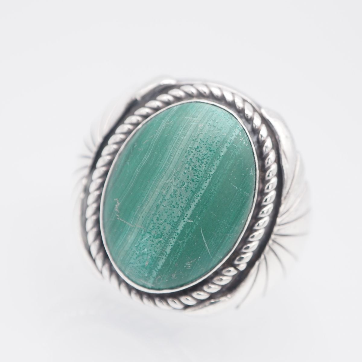 G660 マラカイト 孔雀石 STERLING刻印 リング デザイン シルバー 指輪 ヴィンテージ 19号