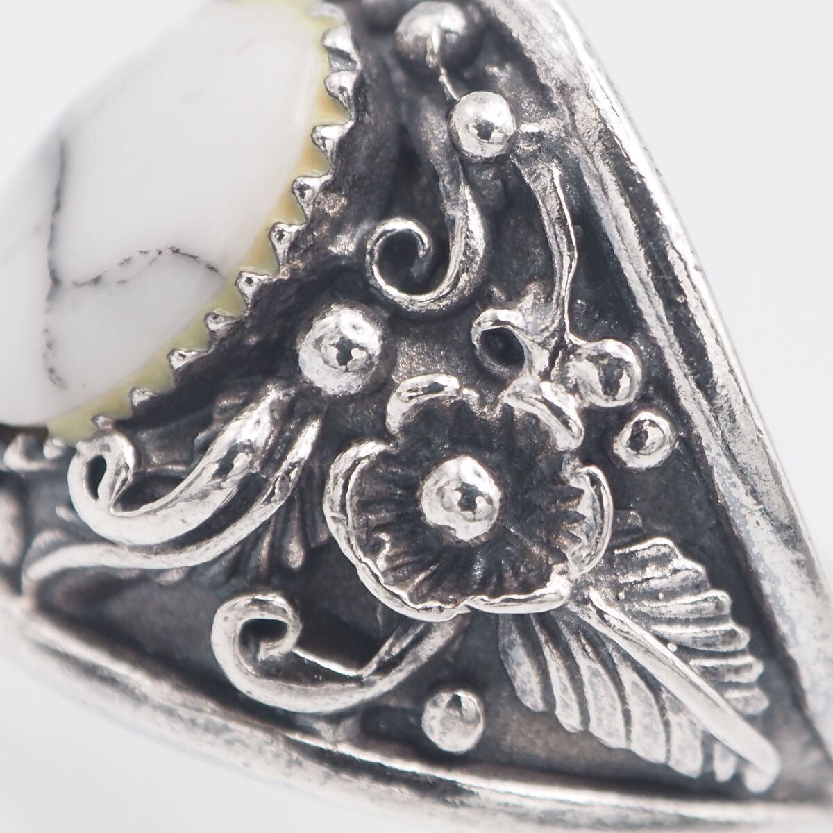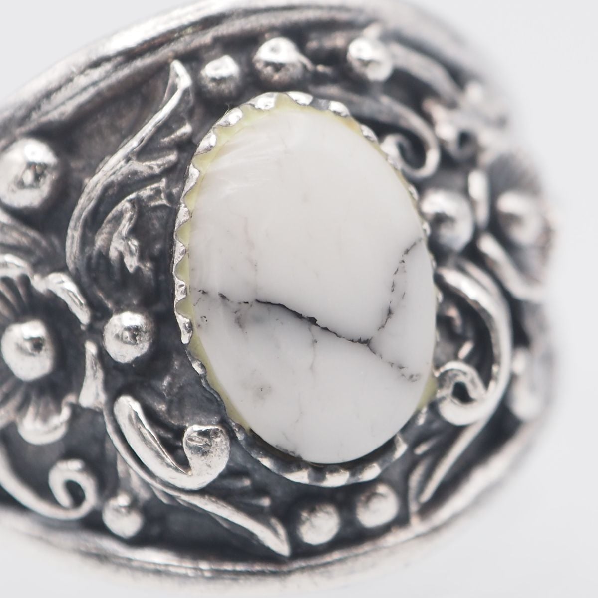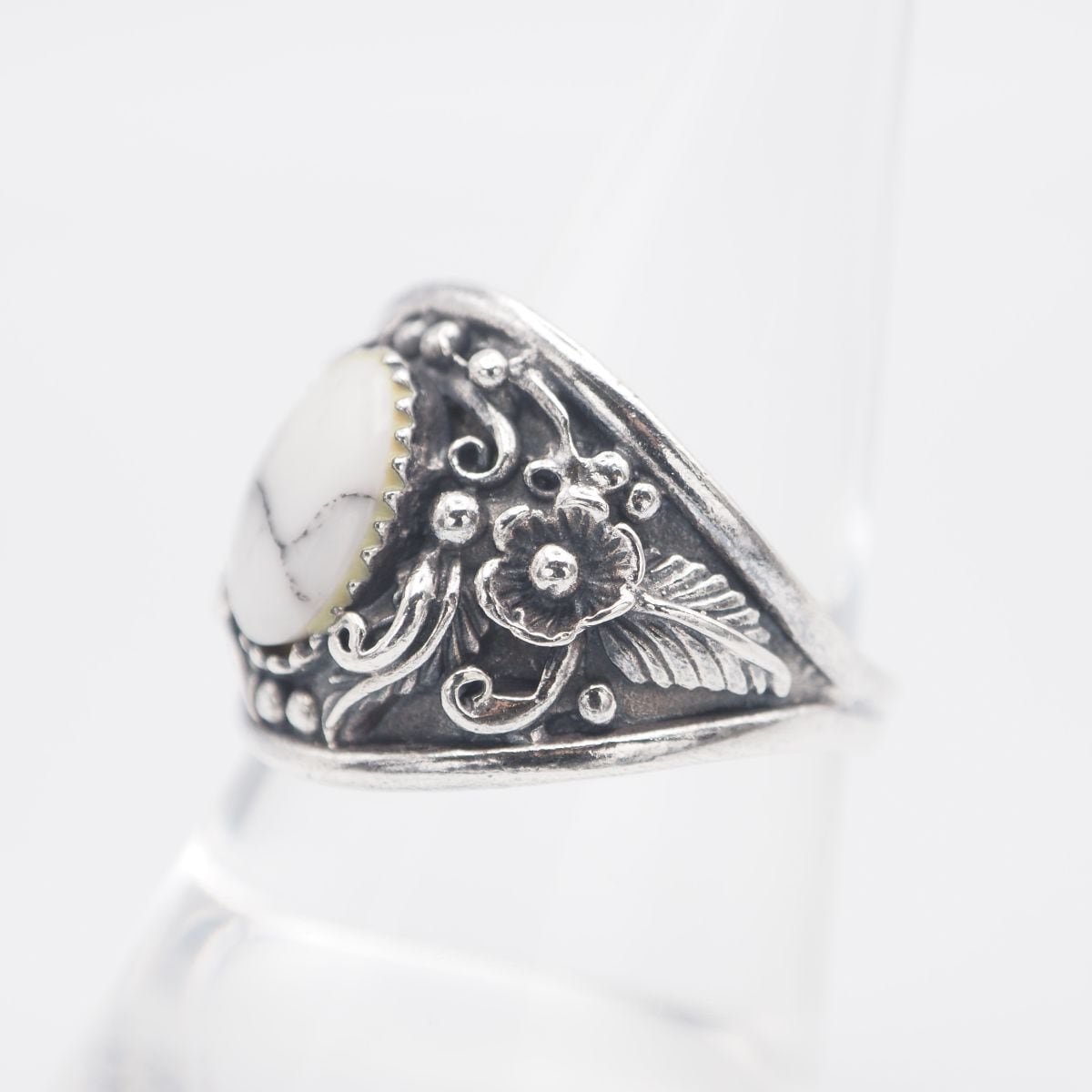 G645 ホワイトターコイズ トルコ石 925刻印 リング フラワー デザイン シルバー 指輪 ヴィンテージ 12月誕生石 19号