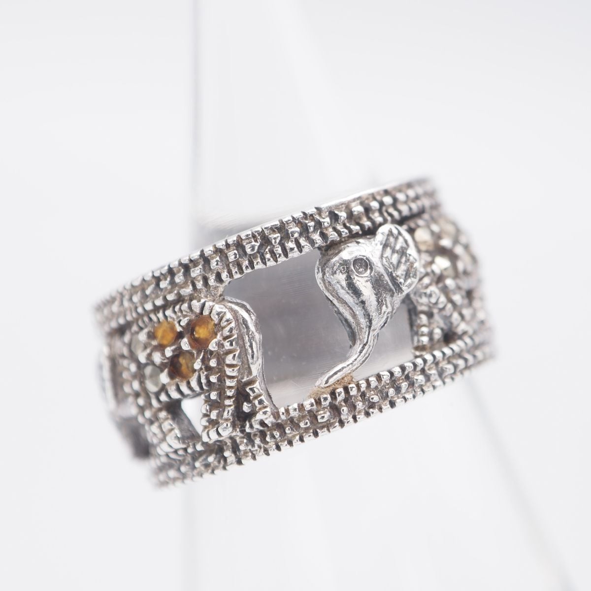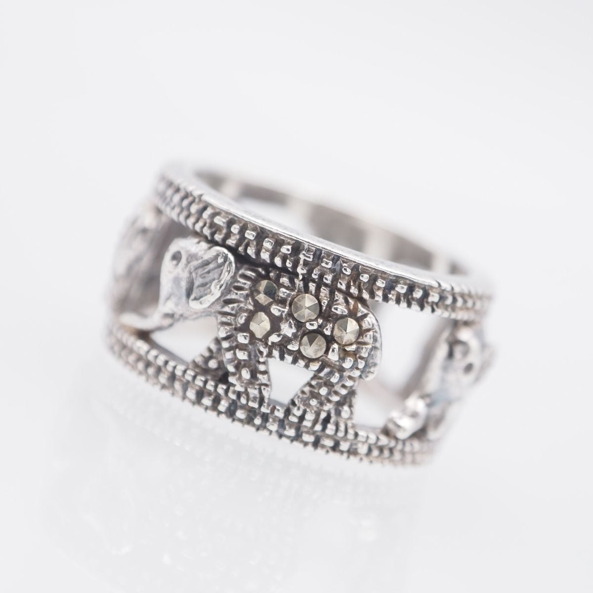 G592 マーカサイト マルカジット 925刻印 リング 象 エレファント 透かし彫り デザイン シルバー 指輪 ヴィンテージ 12号