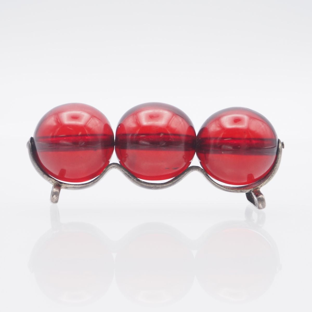 G580 琥珀 コハク レッドアンバー 帯留め デザイン シルバー 和装小物 ヴィンテージ