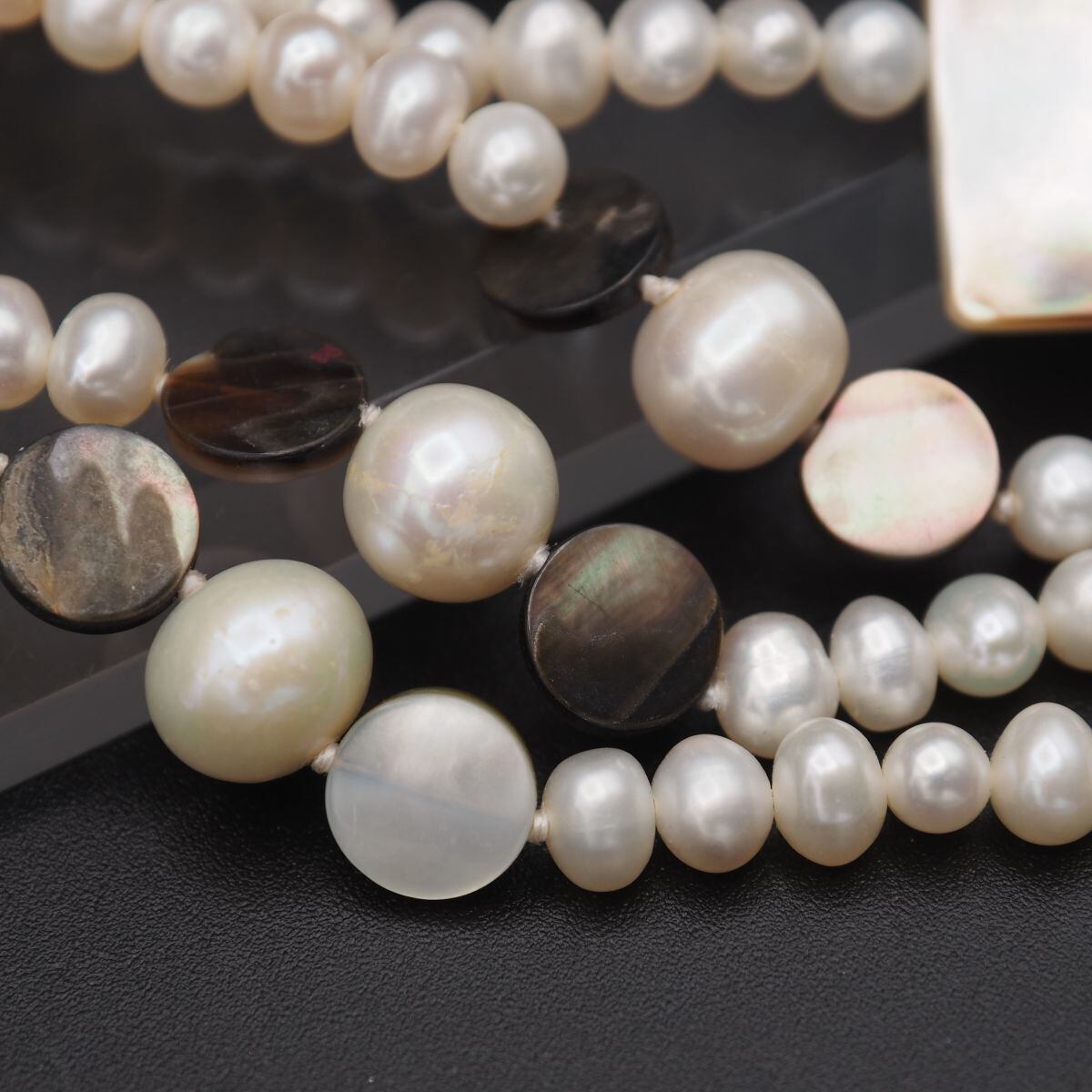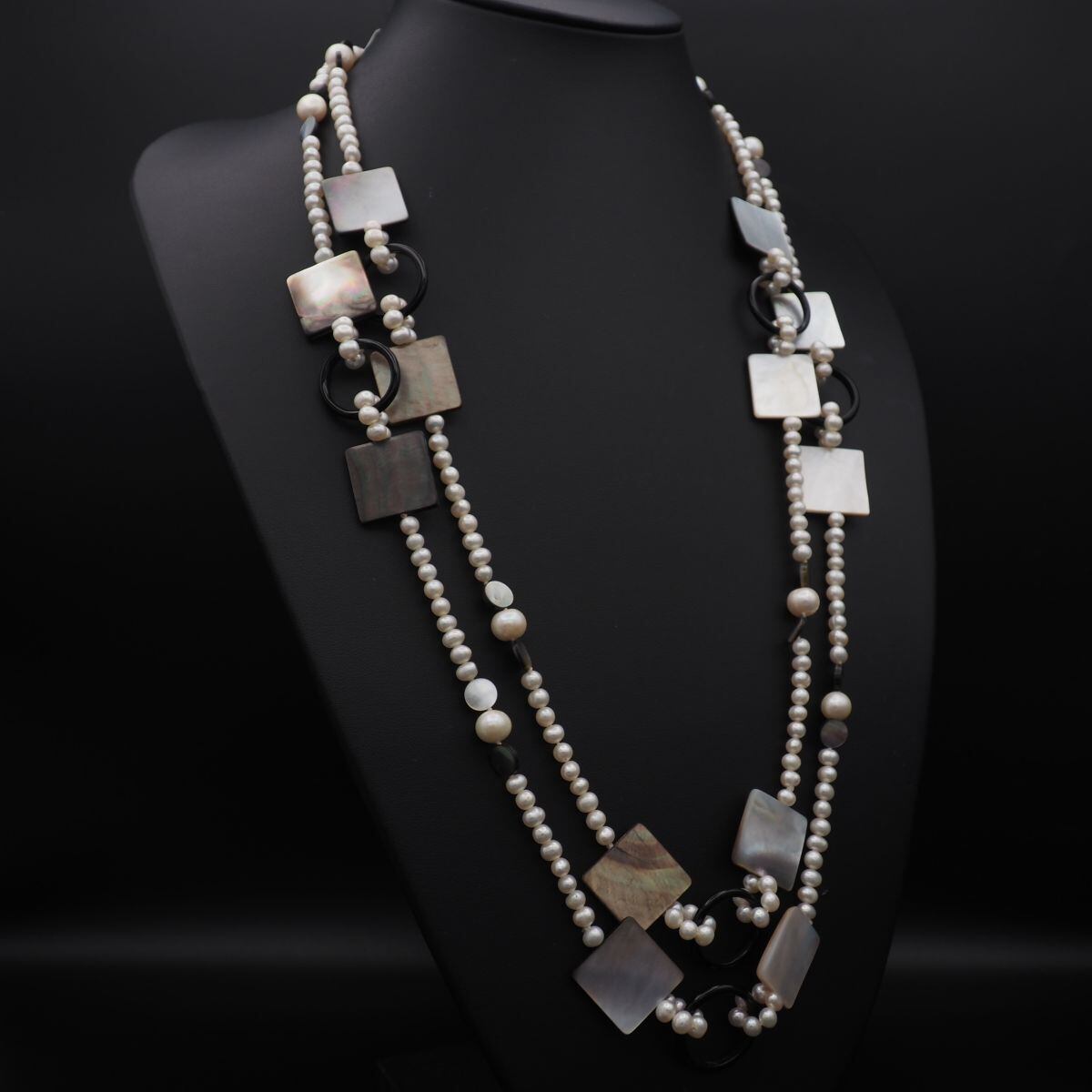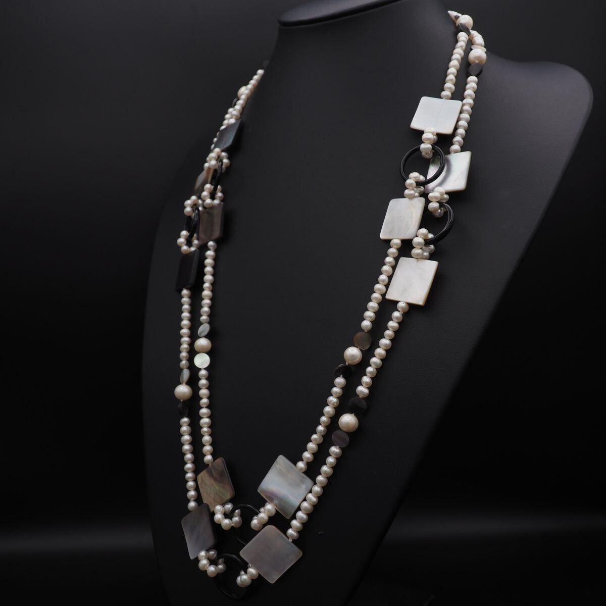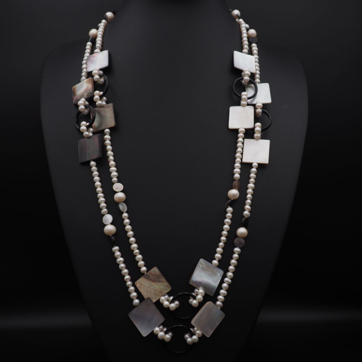L652 シェル 淡水真珠 パール ロング ネックレス デザイン 6月誕生石