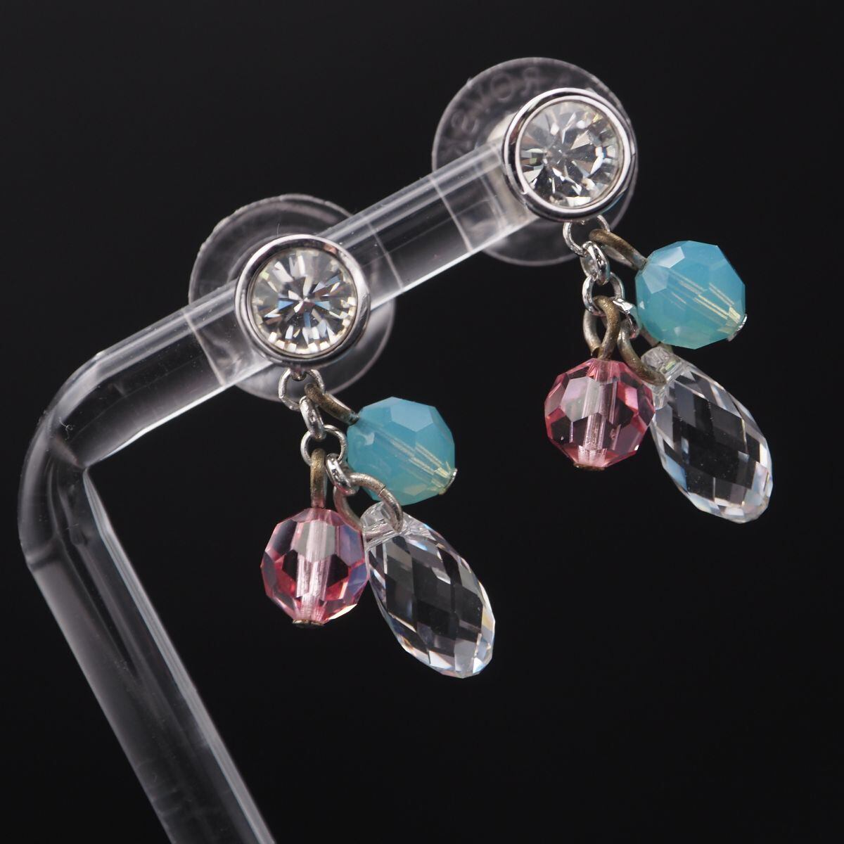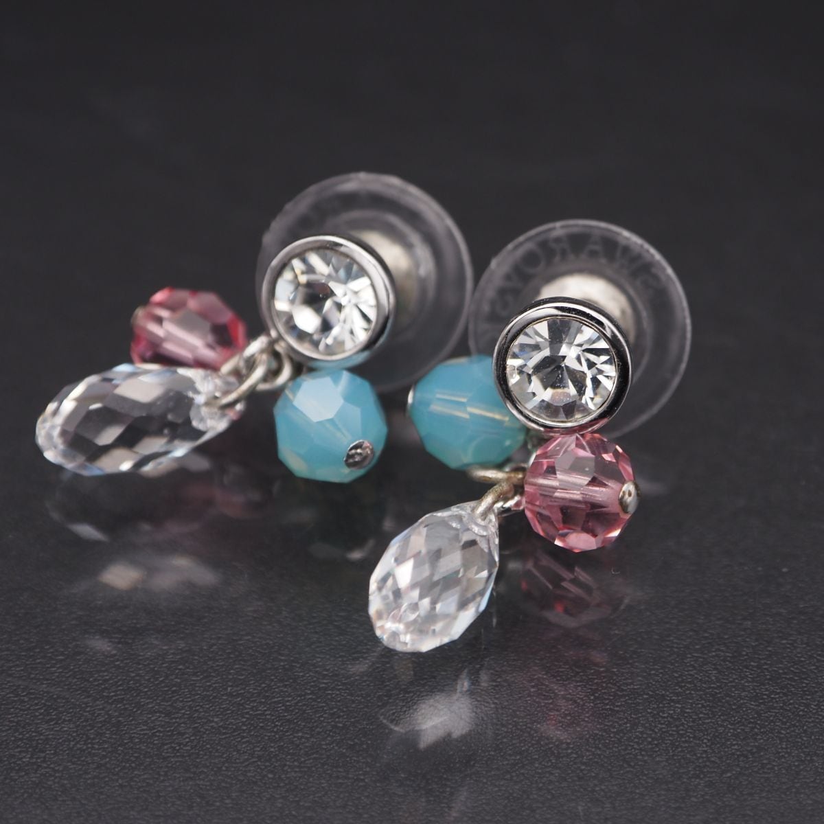 M338 スワロフスキー SWAROVSKI ピアス ダイヤモンド風 ブルー ピンクカラー スウィング デザイン シルバー
