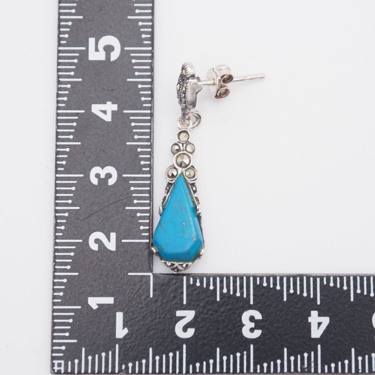 M877 ターコイズ トルコ石 925刻印 ピアス 片耳のみ マーカサイト マルカジット スウィング デザイン シルバー ヴィンテージ 12月誕生石