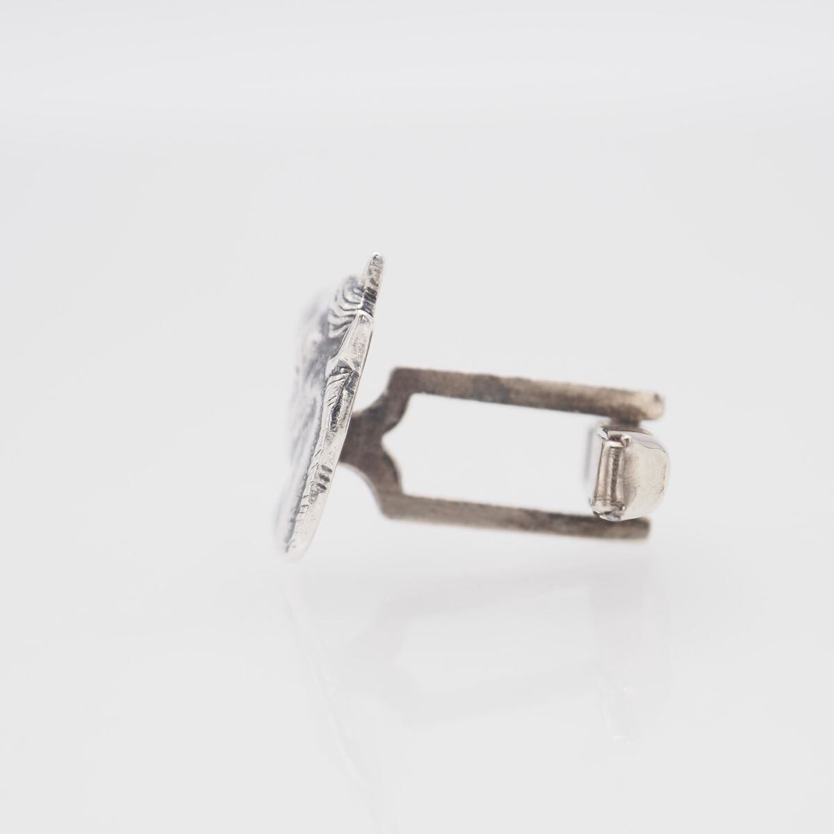 Q049 ヴィンテージ カフスボタン 片方のみ 馬 ホース デザイン シルバー カフリンクス