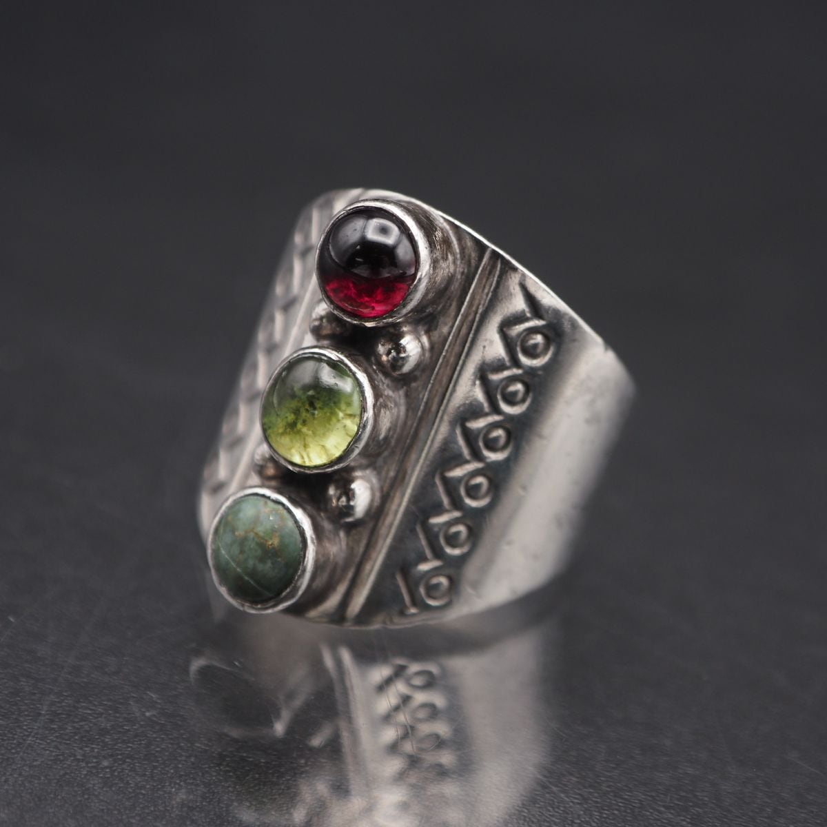 Q244 カラーストーン STERLING 925刻印 リング デザイン シルバー 指輪 12号