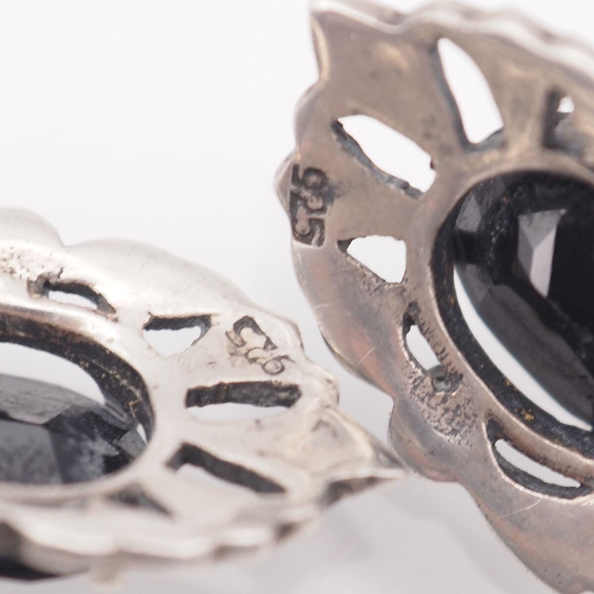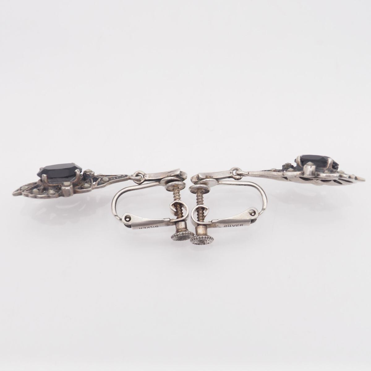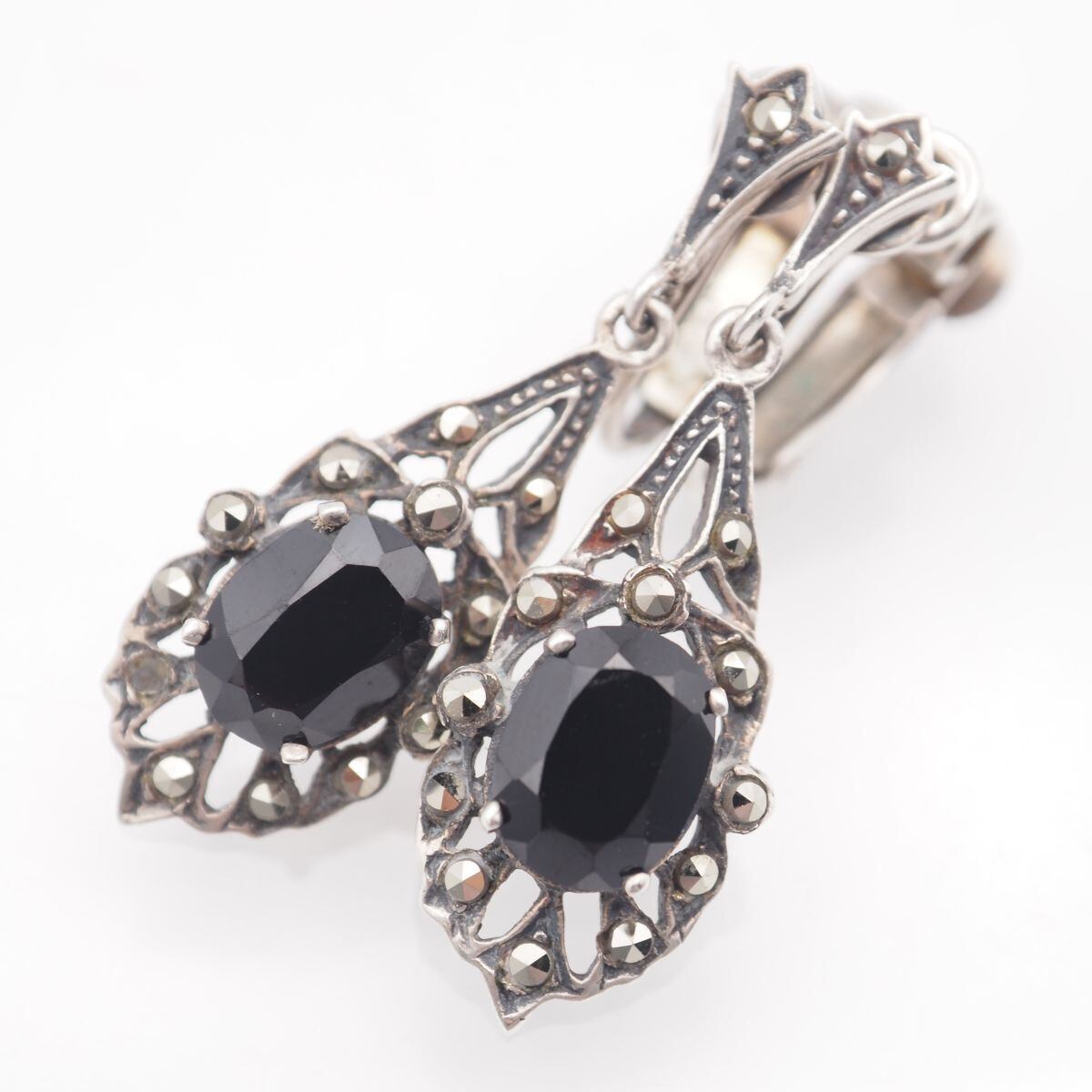 S150 オニキス SILVER925刻印 イヤリング マーカサイト マルカジット デザイン シルバー