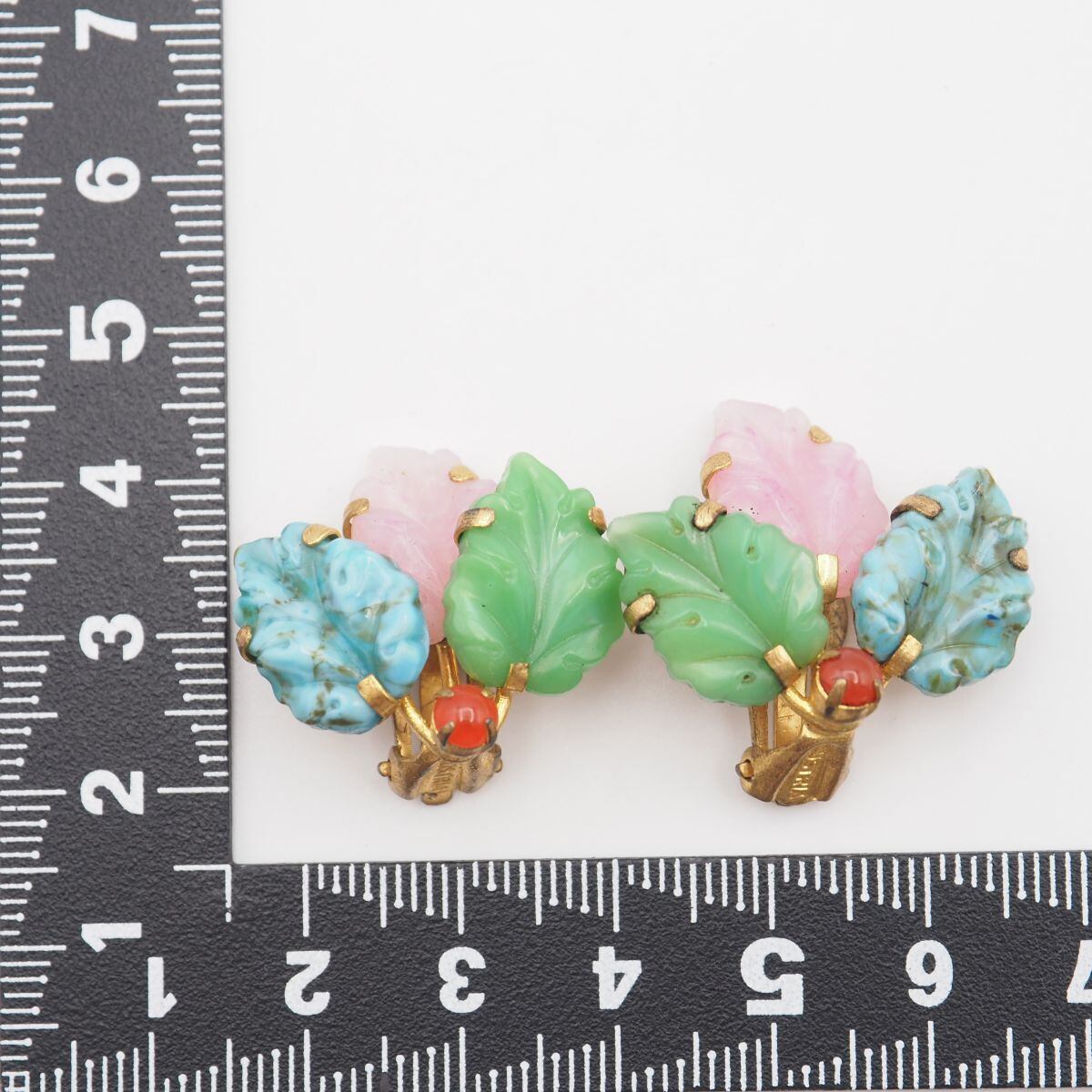 R304 AUSTRIA刻印 イヤリング リーフ 天然石風 デザイン コスチュームジュエリー