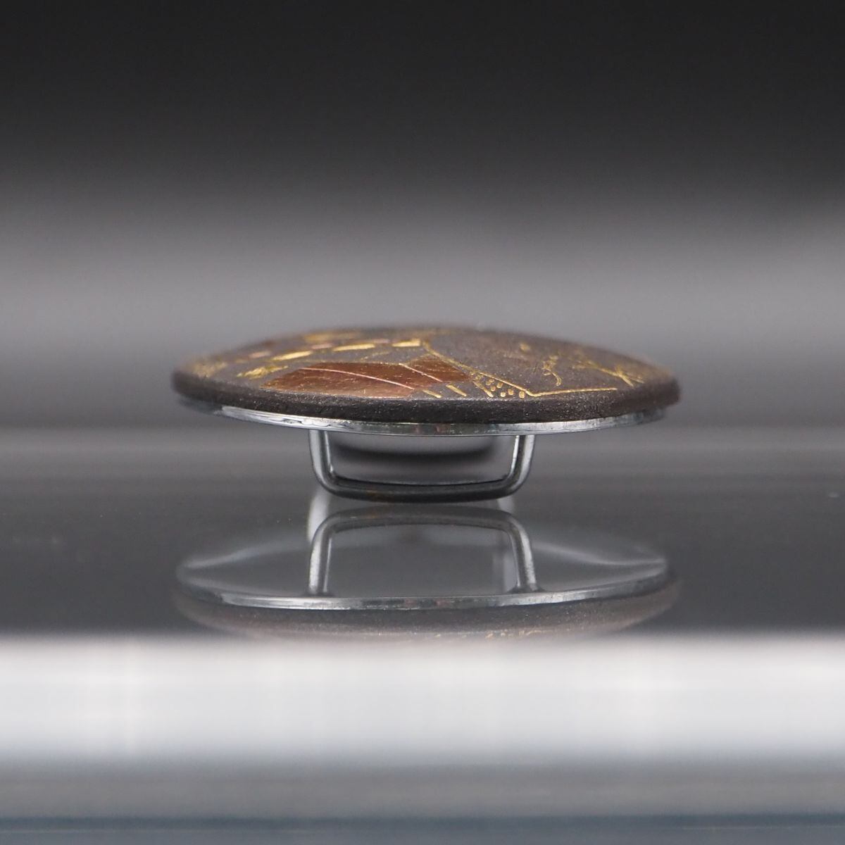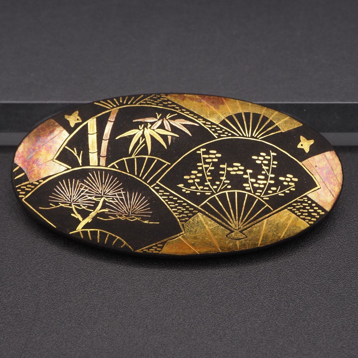 S200 金工 象嵌 帯留め 扇子 松竹梅柄 デザイン 和装小物 アンティーク