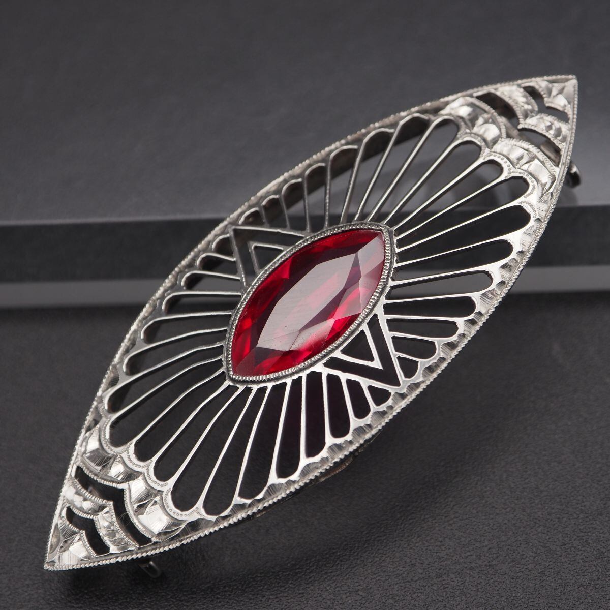 S426 ルビー?ピンクスピネル? 帯留め 透かし彫り デザイン シルバーカラー 和装小物