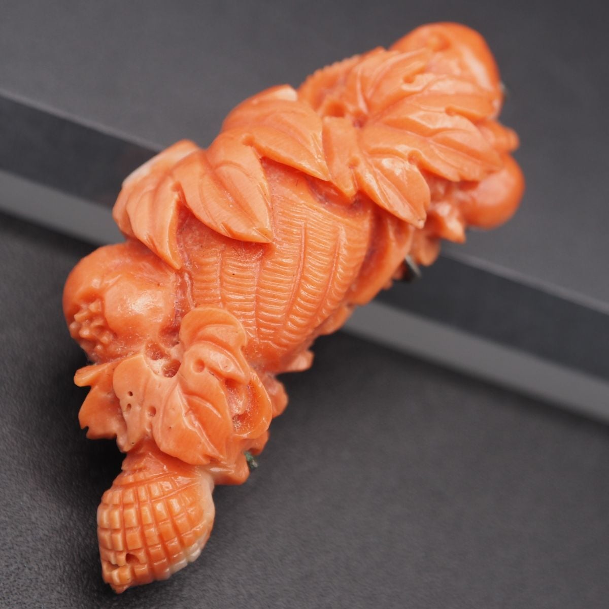 S246 珊瑚 サンゴ 帯留め リーフ 葉彫刻 デザイン 和装小物 3月誕生石