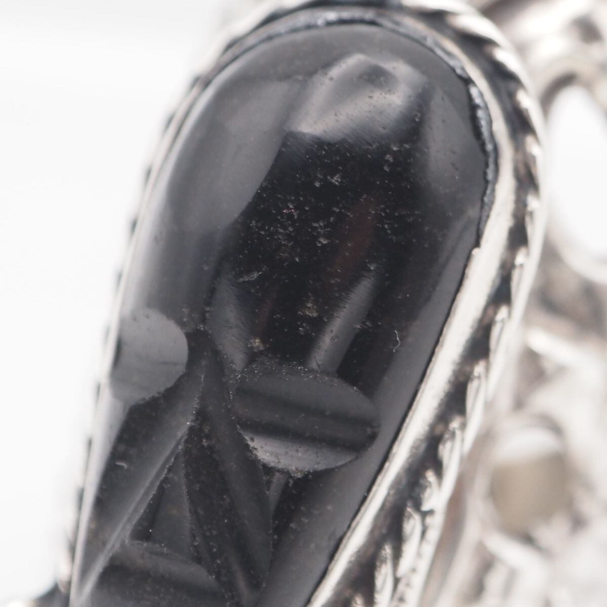 S466 オニキス風 MEXICO刻印 ロケット リング 大ぶり 人面 デザイン シルバーカラー 指輪 メキシコ製 メキシカンジュエリー 21号