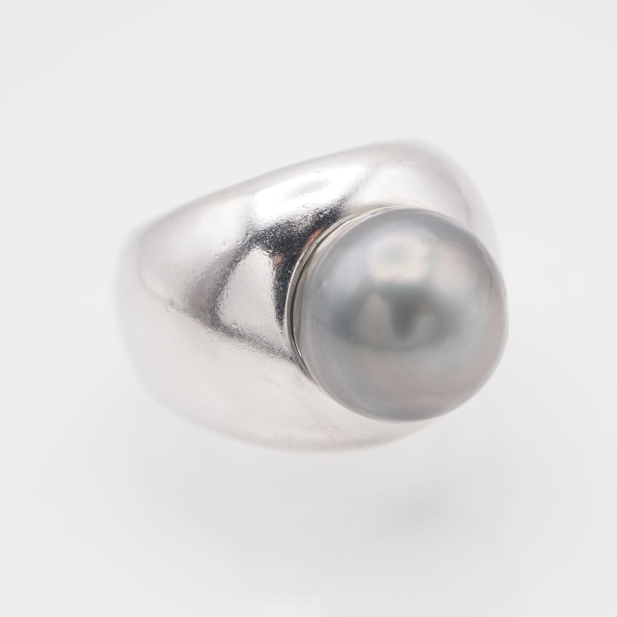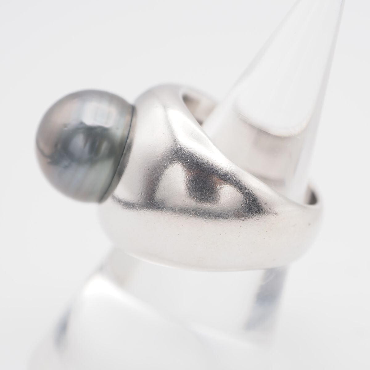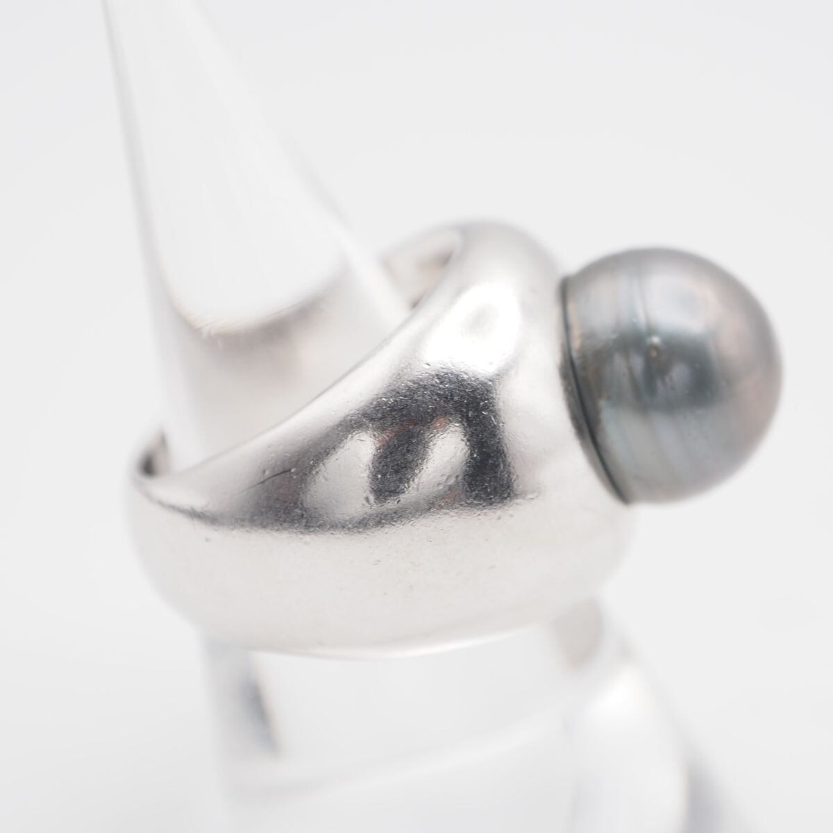 S363 黒蝶真珠 13mm珠 パール SILVER刻印 リング 大ぶり デザイン シルバー 指輪 6月誕生石 16号