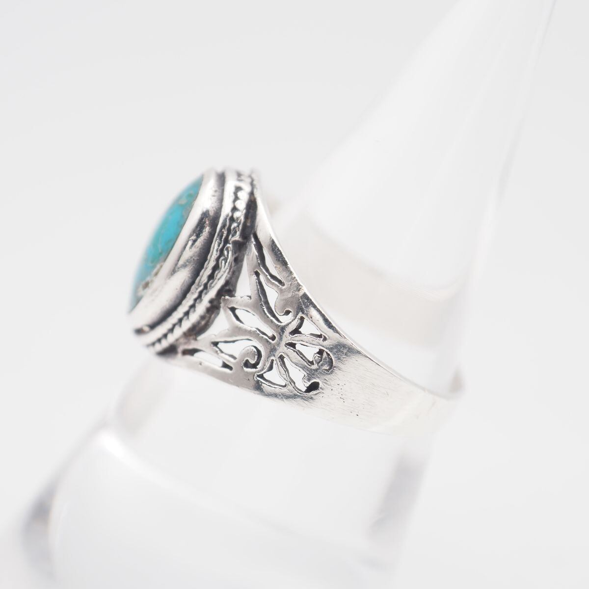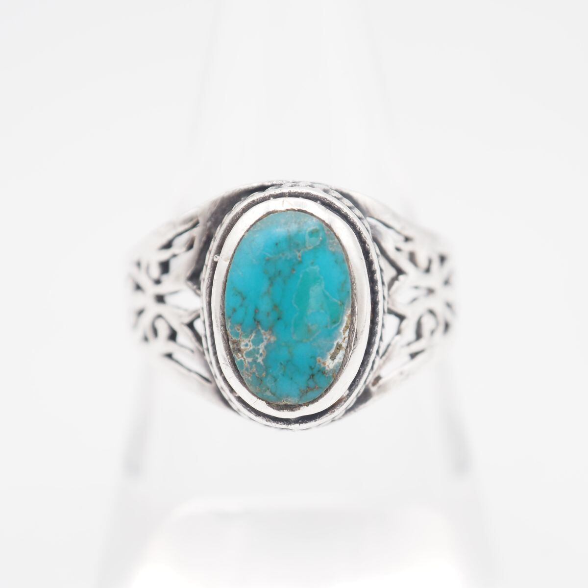 S383 ターコイズ トルコ石 925刻印 リング 透かし彫り デザイン シルバー 指輪 ヴィンテージ 12月誕生石 16号