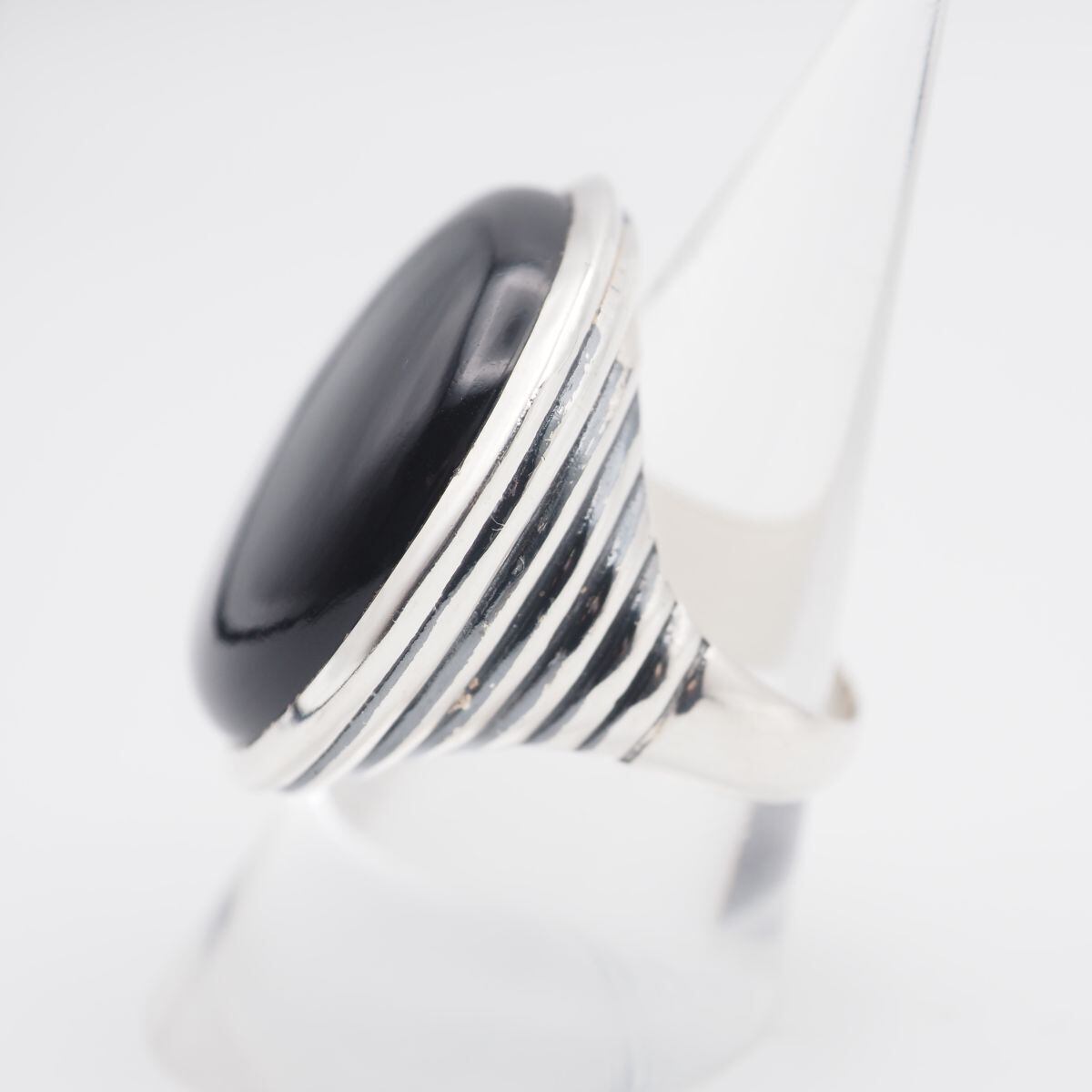 S388 特大 オニキス 925刻印 リング 大ぶり 裏細工 デザイン シルバー 指輪 18号