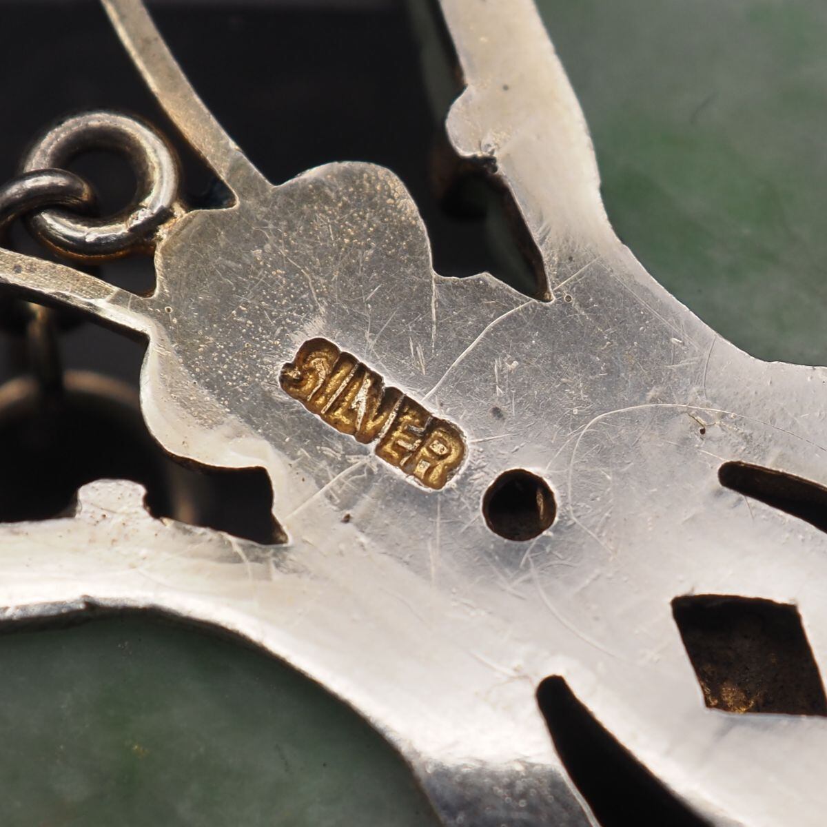 S856 翡翠?ヒスイ? SILVER刻印 ペンダント トップ 七宝 蝶 バタフライ デザイン シルバー チャーム ヘッド ヴィンテージ