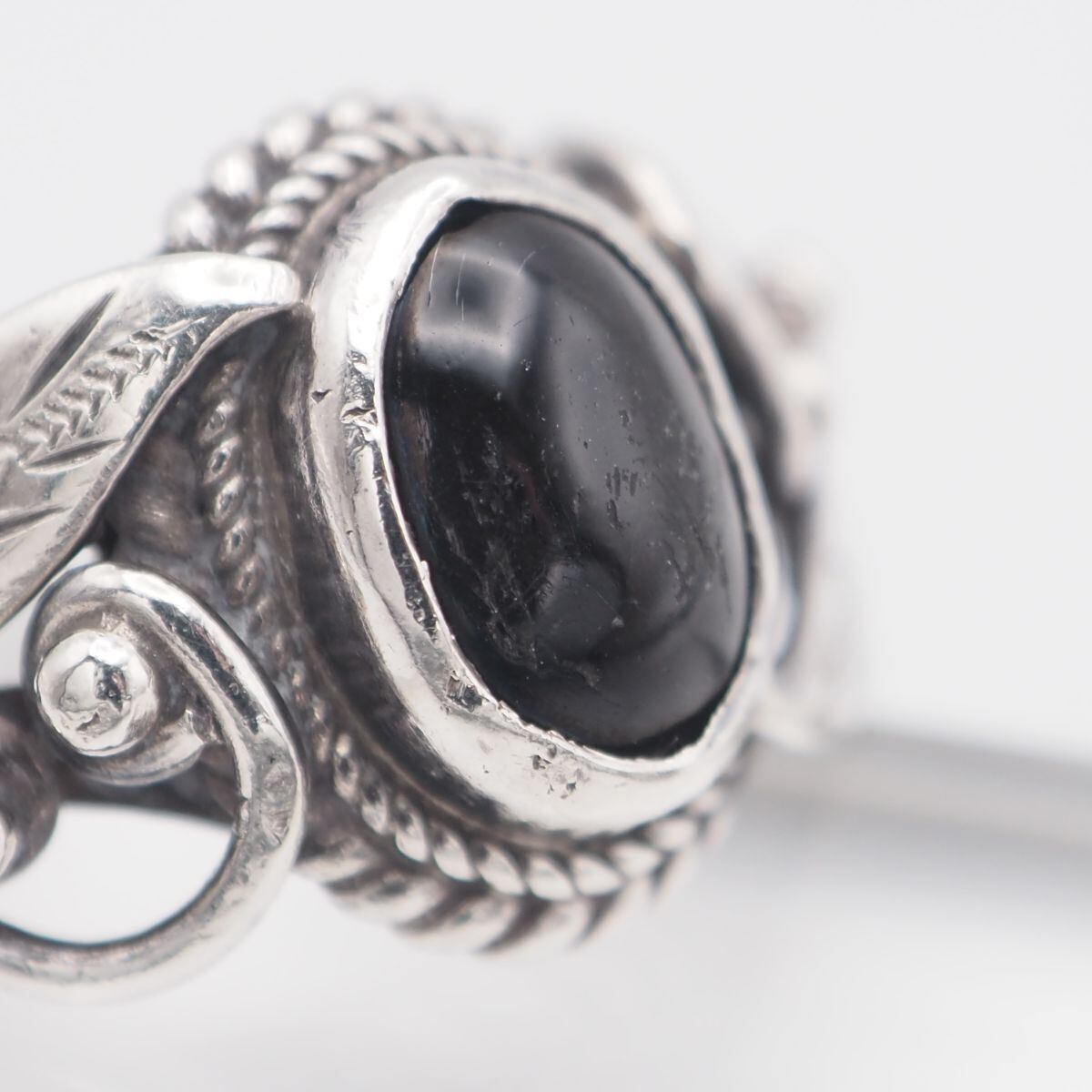 S517 ブラックスター リング 彫刻 リーフ デザイン シルバー 指輪 ヴィンテージ 9号