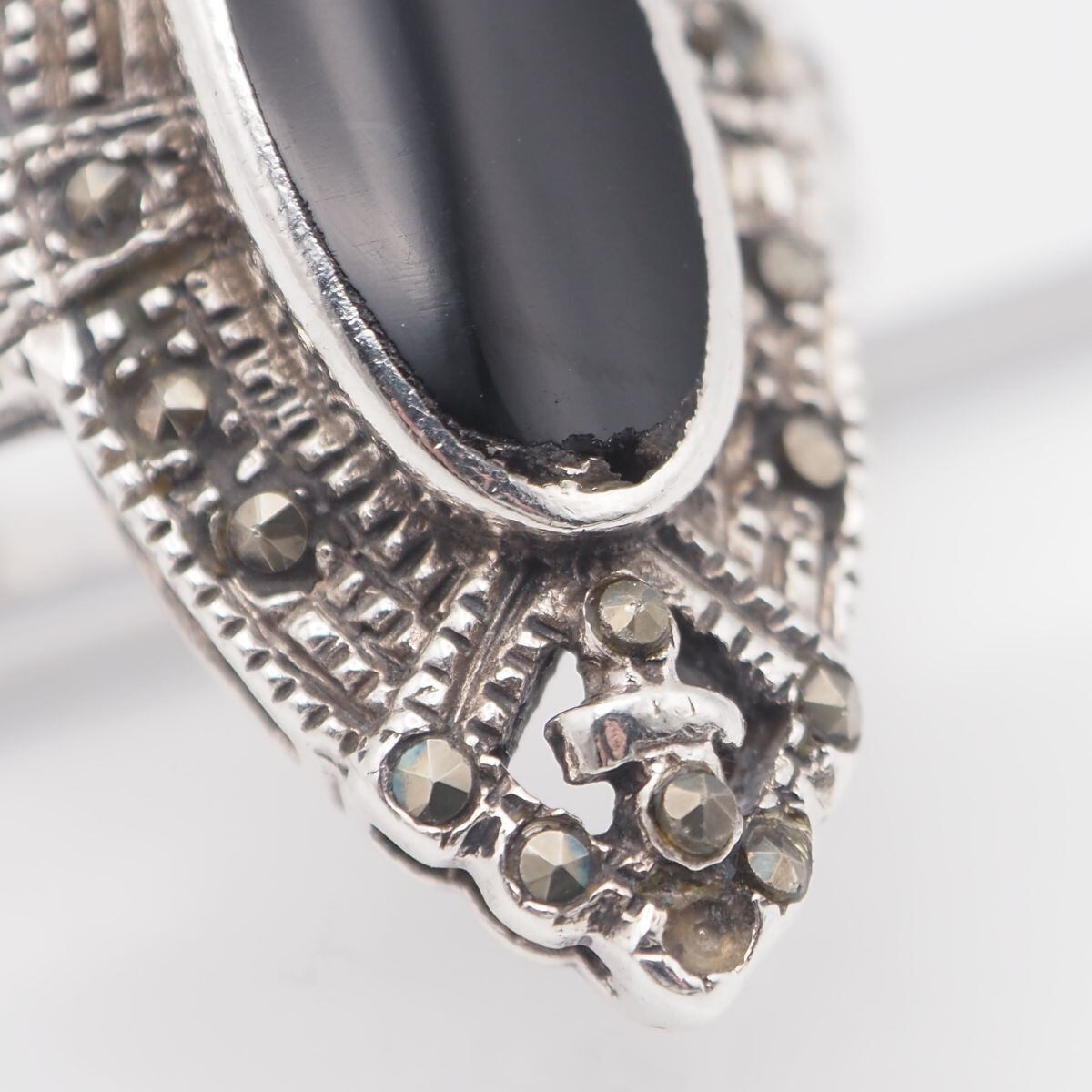 S574 オニキス風 マーカサイト マルカジット リング デザイン シルバー ヴィンテージ 指輪 13-14号