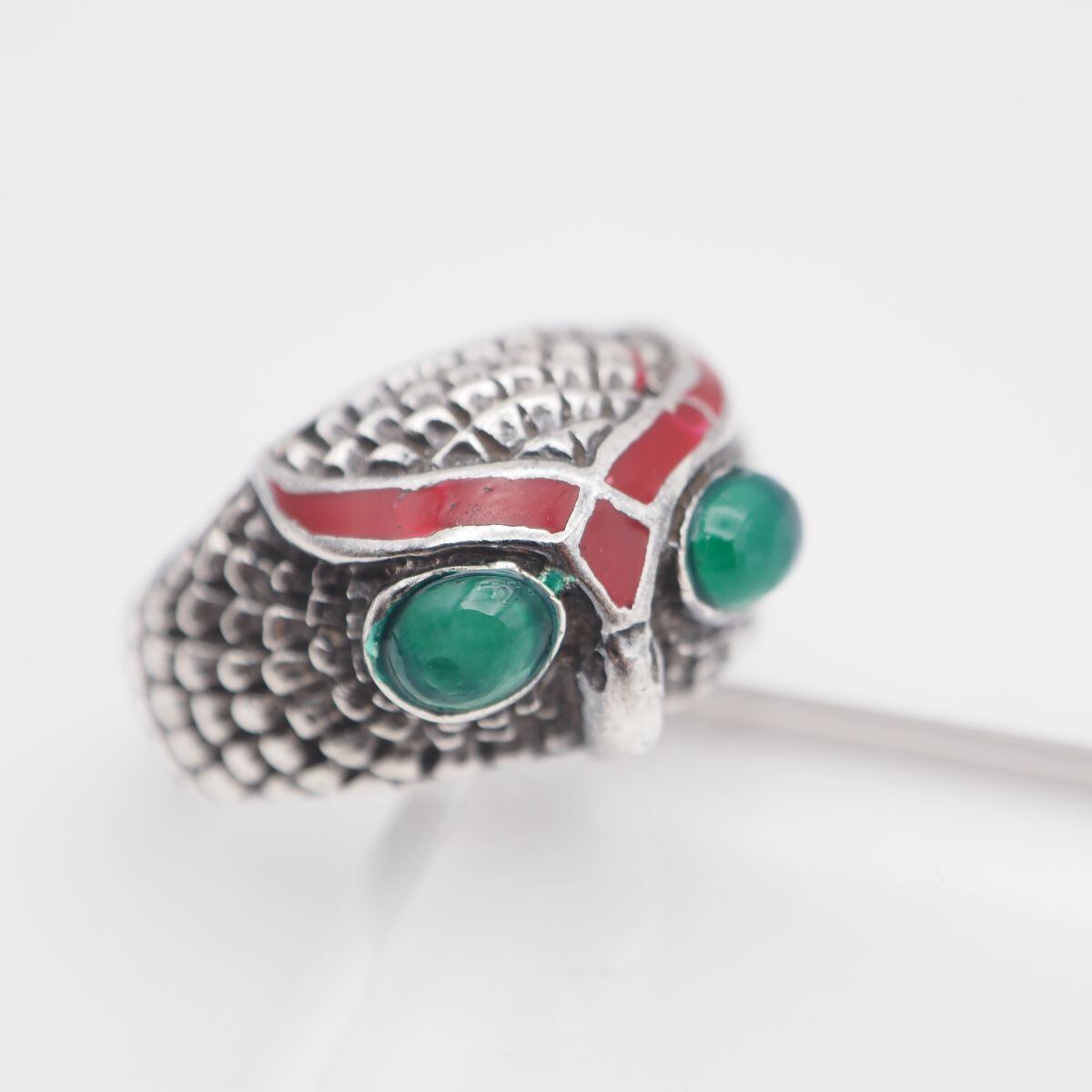 S549 グリーンアゲート 緑瑪瑙 メノウ リング 梟 フクロウ レッドエナメル デザイン シルバー 指輪 12号