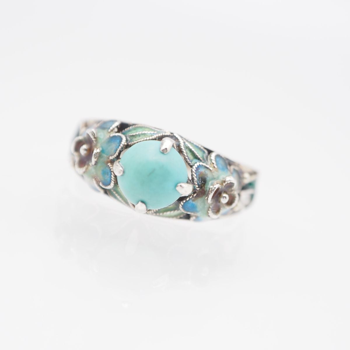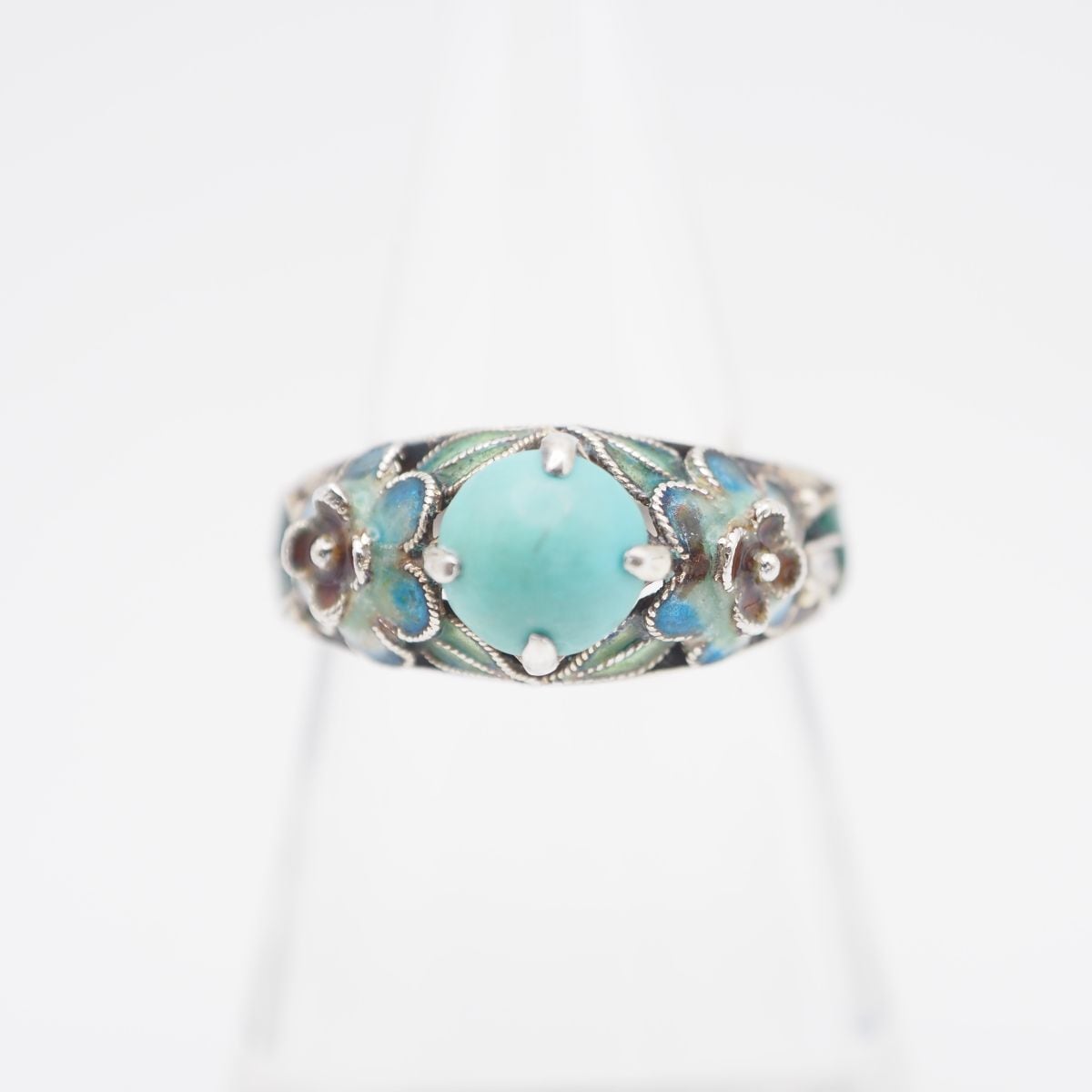 S501 七宝 ターコイズ風 リング フラワー リーフ デザイン シルバー 指輪 8号