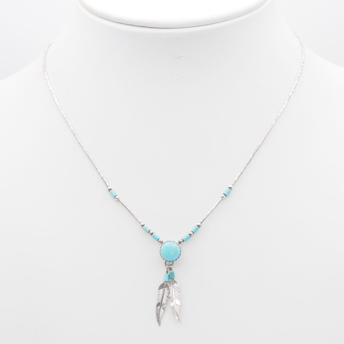 S433 ターコイズ トルコ石 ネックレス 羽 フェザー デザイン シルバーカラー 12月誕生石