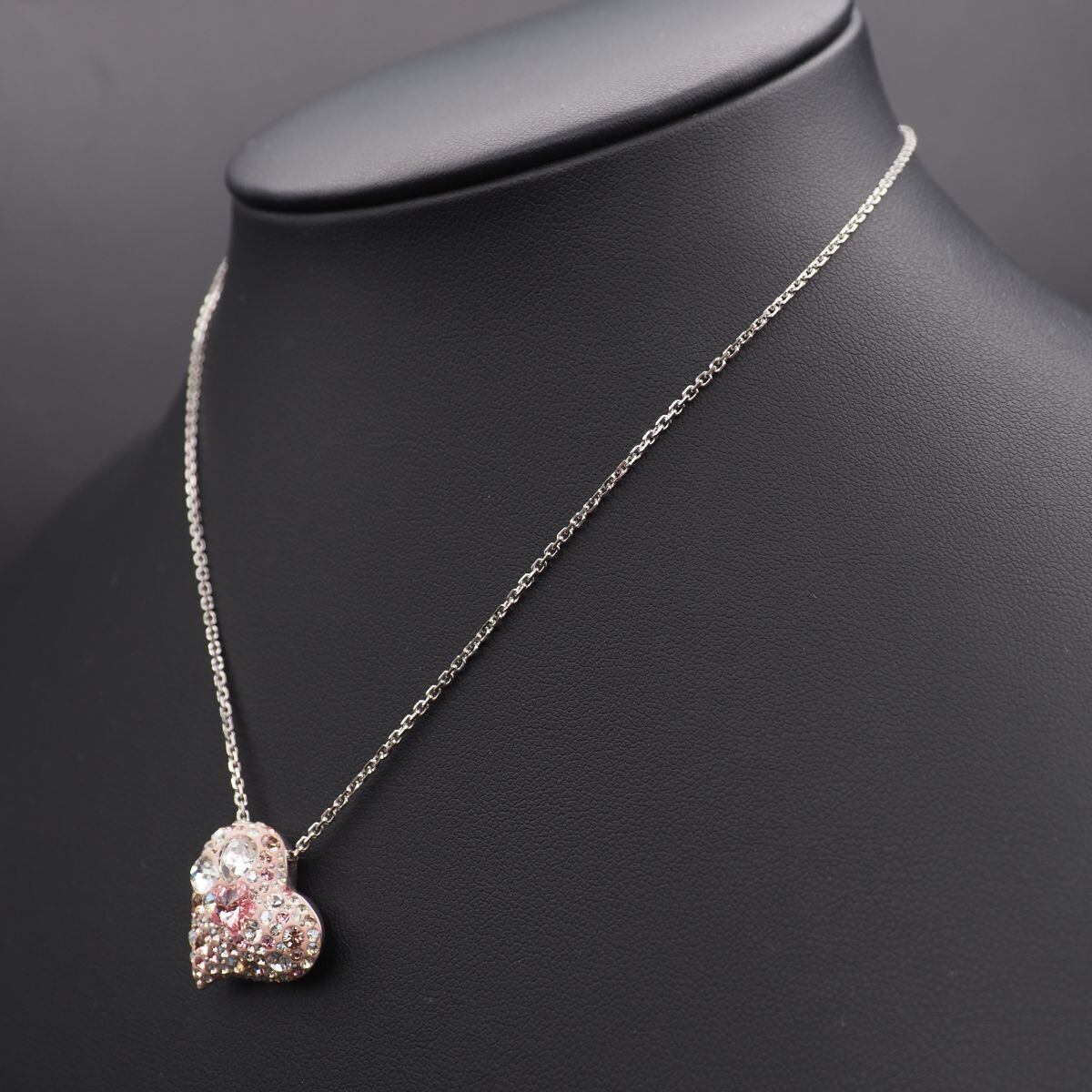 S710 スワロフスキー SWAROVSKI ネックレス ハート 裏細工 彫刻 ピンクカラー ダイヤモンド風 シルバーカラー デザイン