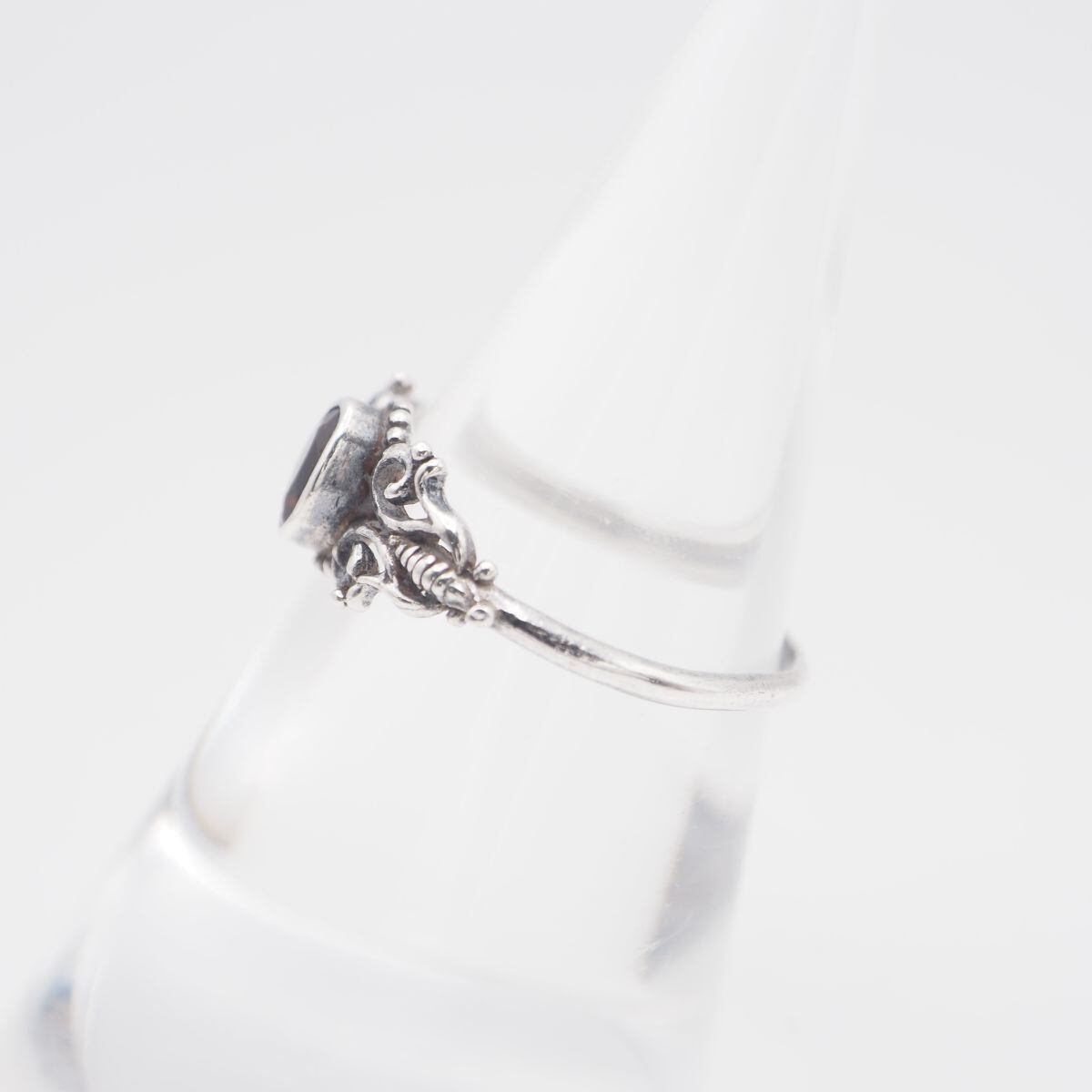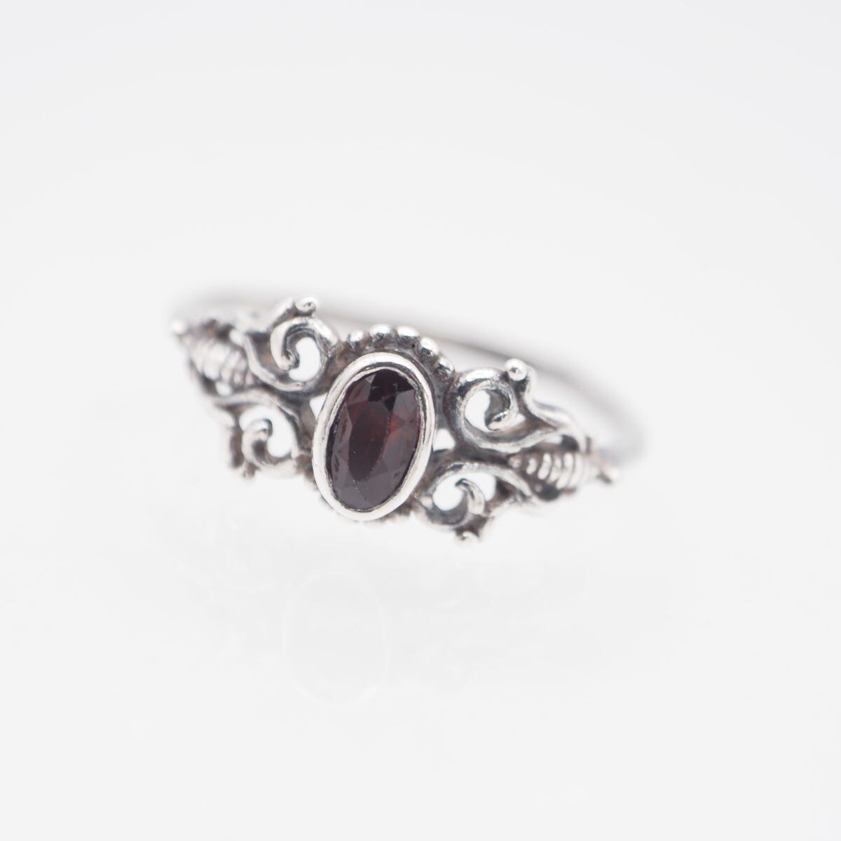 S432 ガーネット 925刻印 リング 透かし彫り デザイン シルバー 指輪 1月誕生石 11-12号