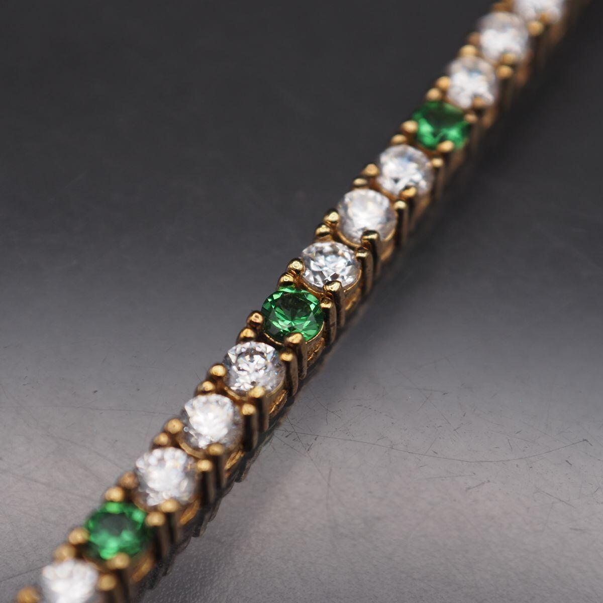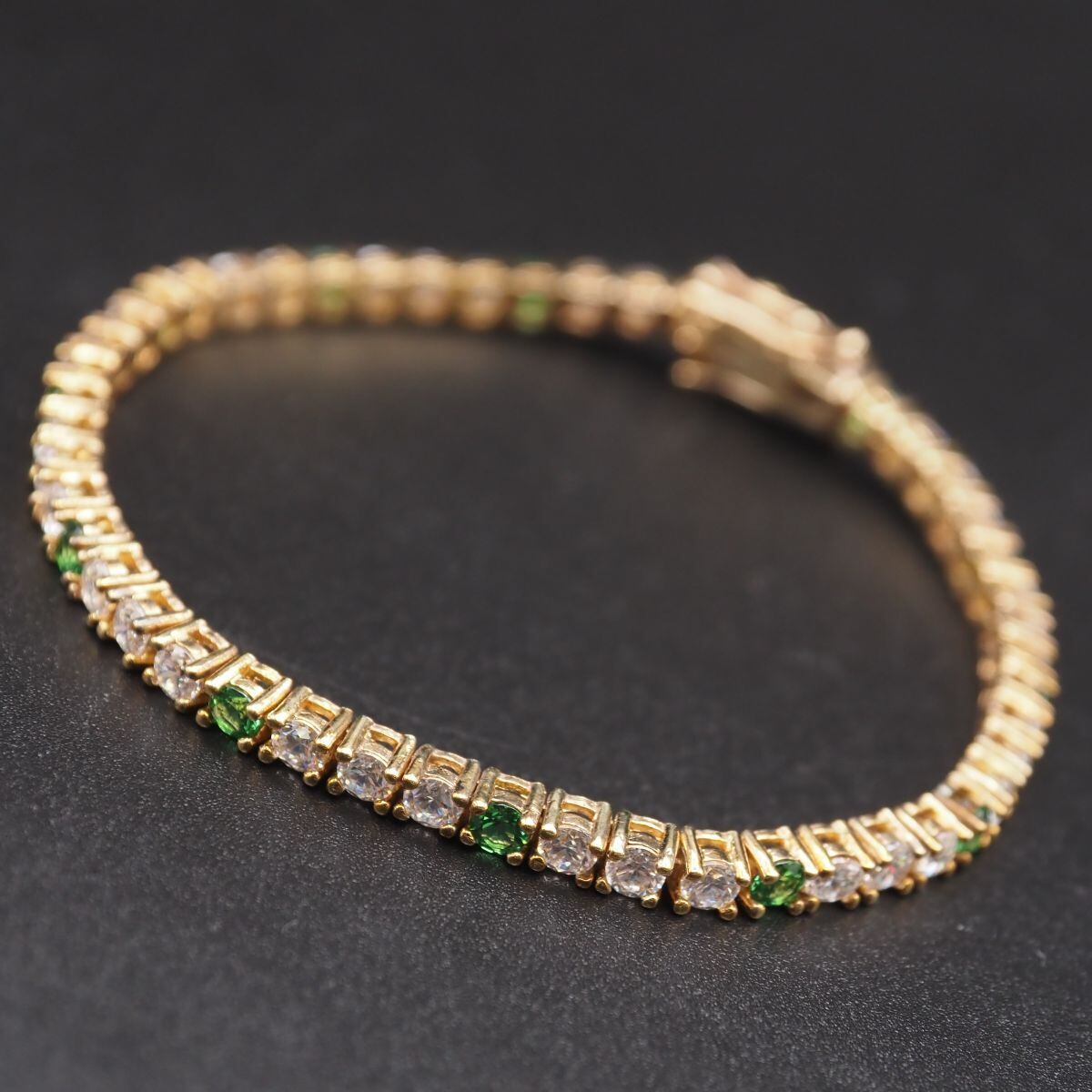 S616 ダイヤモンド風 グリーンストーン 925刻印 テニス ブレスレット ゴールドカラー デザイン シルバー