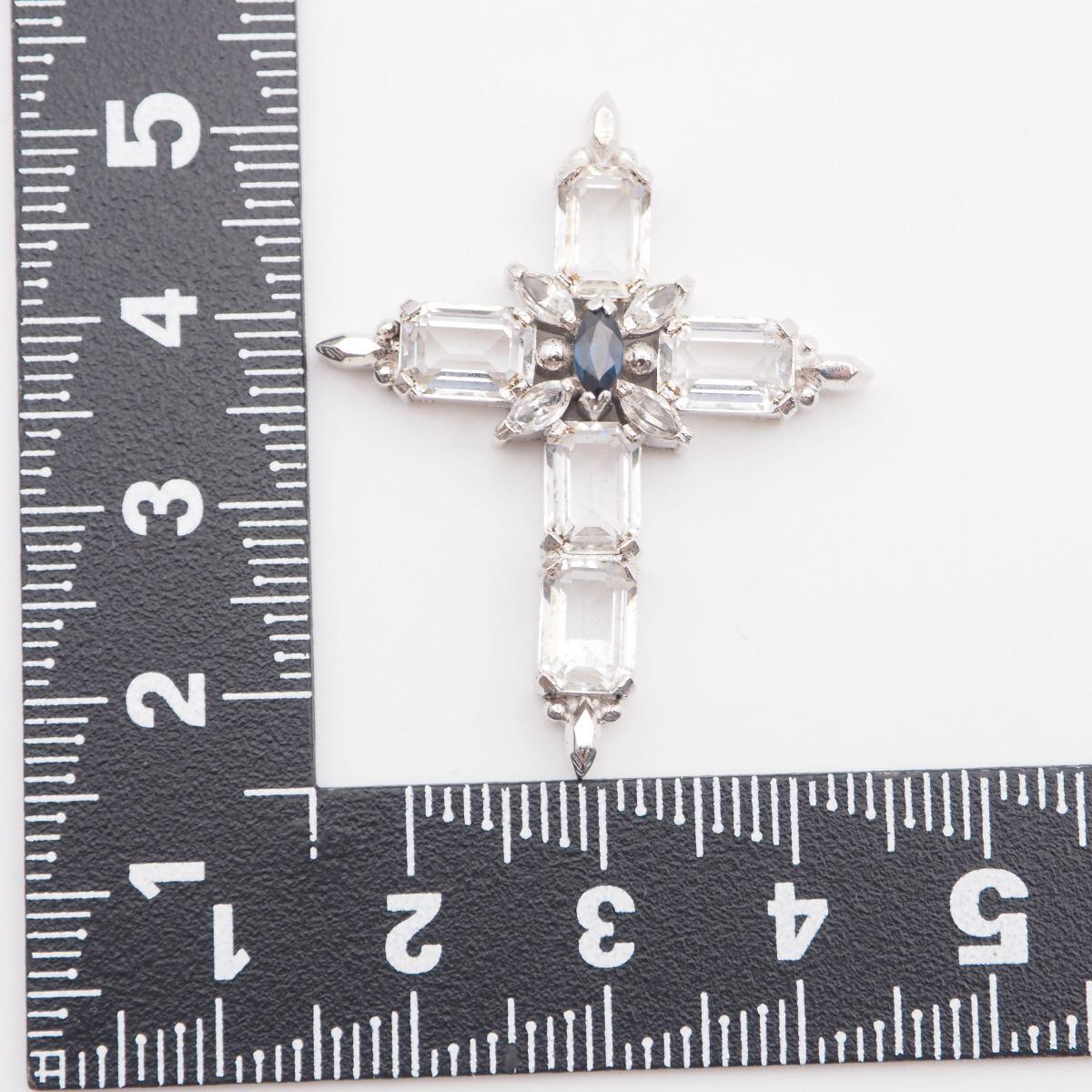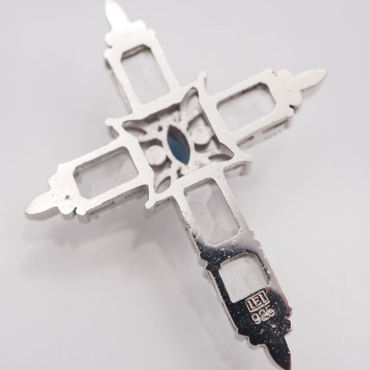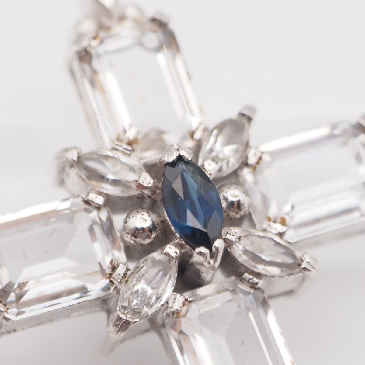 S940 IEI サファイア?ブルースピネル? 925刻印 ペンダント トップ クロス ダイヤモンド風 デザイン シルバー チャーム ヘッド