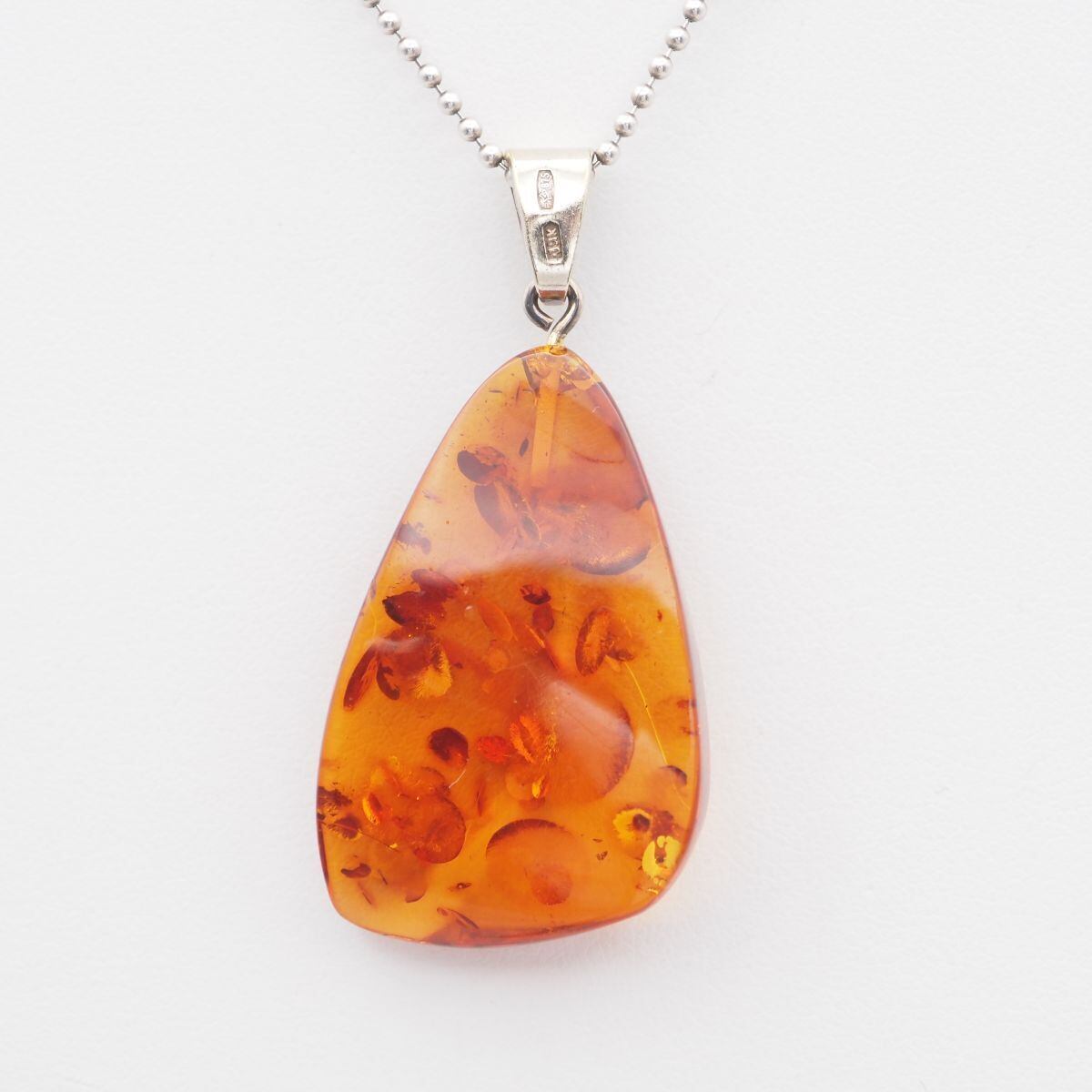 S420 琥珀 コハク アンバー 875刻印 ペンダント トップ デザイン シルバー チャーム ヘッド