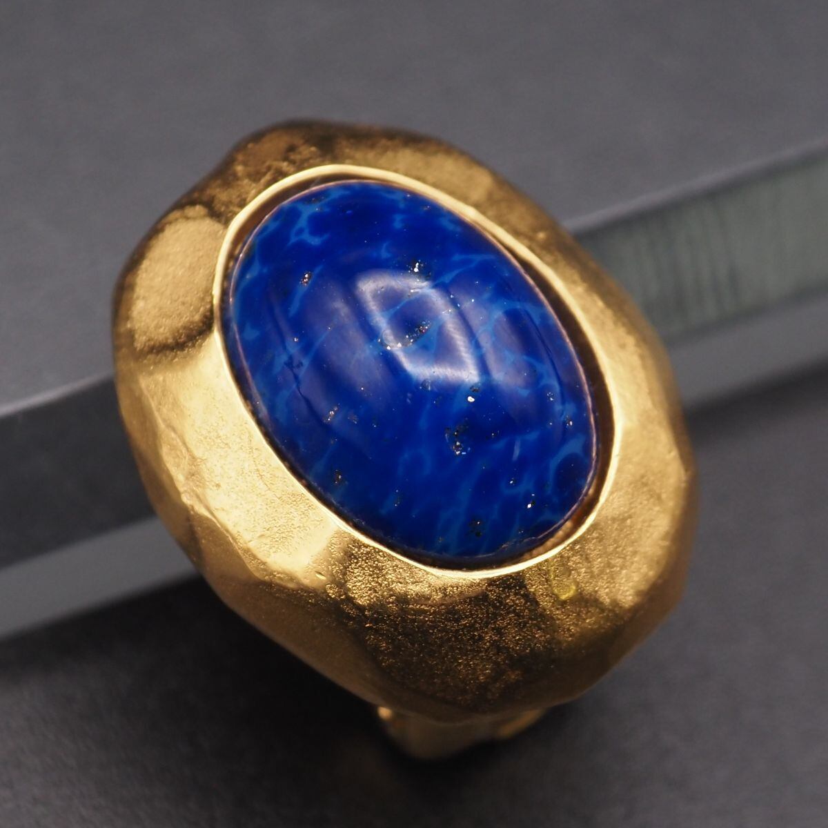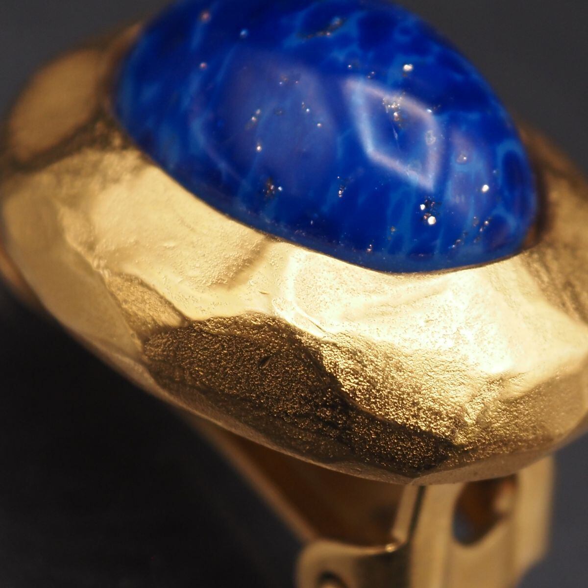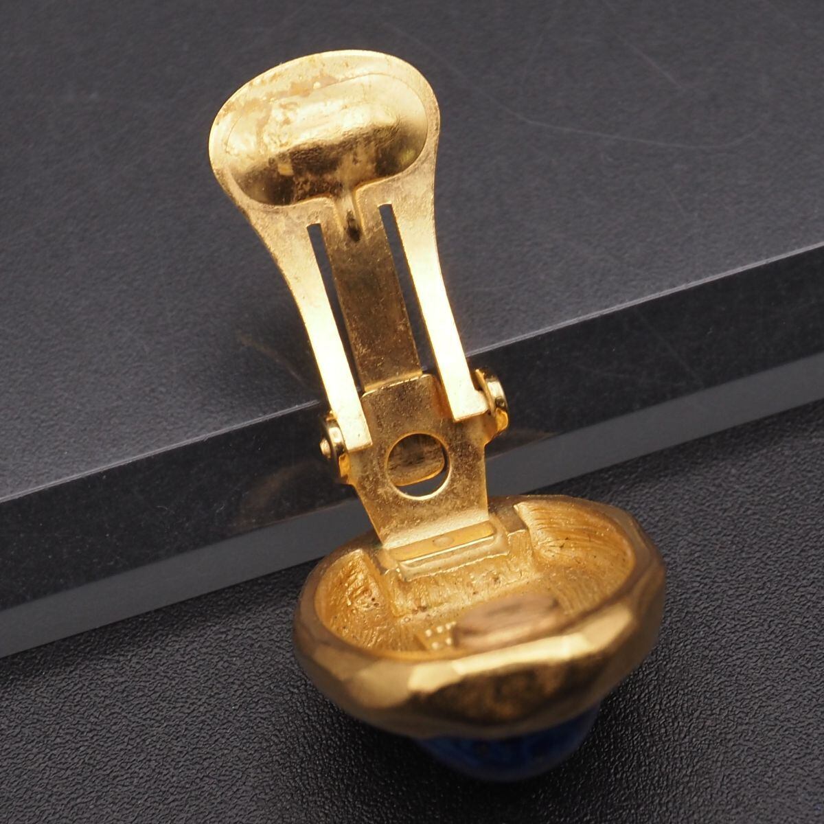 S770 LANVIN ランバン GERMANY刻印 イヤリング 片耳のみ ラピスラズリ風 ゴールドカラー デザイン コスチュームジュエリー