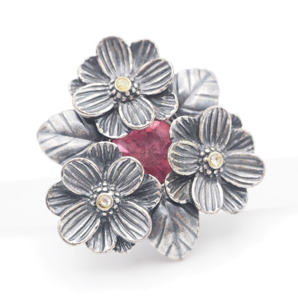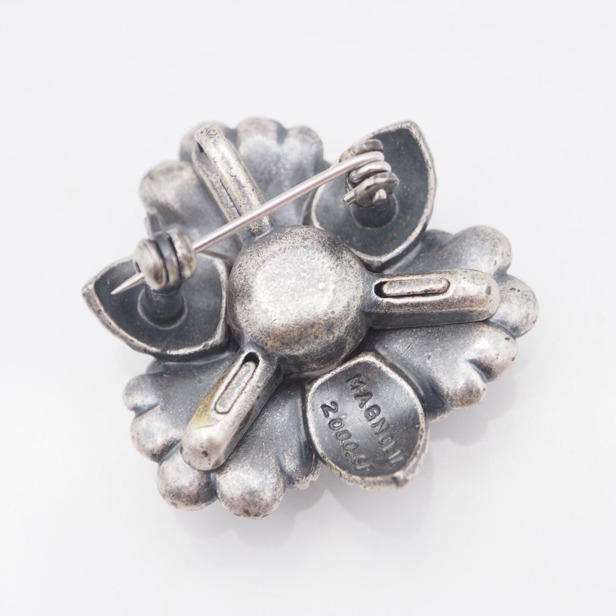 S777 MAGNOLIA マグノリア 2000.SP刻印 ブローチ フラワー ピンクストーン風 シルバーカラー デザイン コスチュームジュエリー