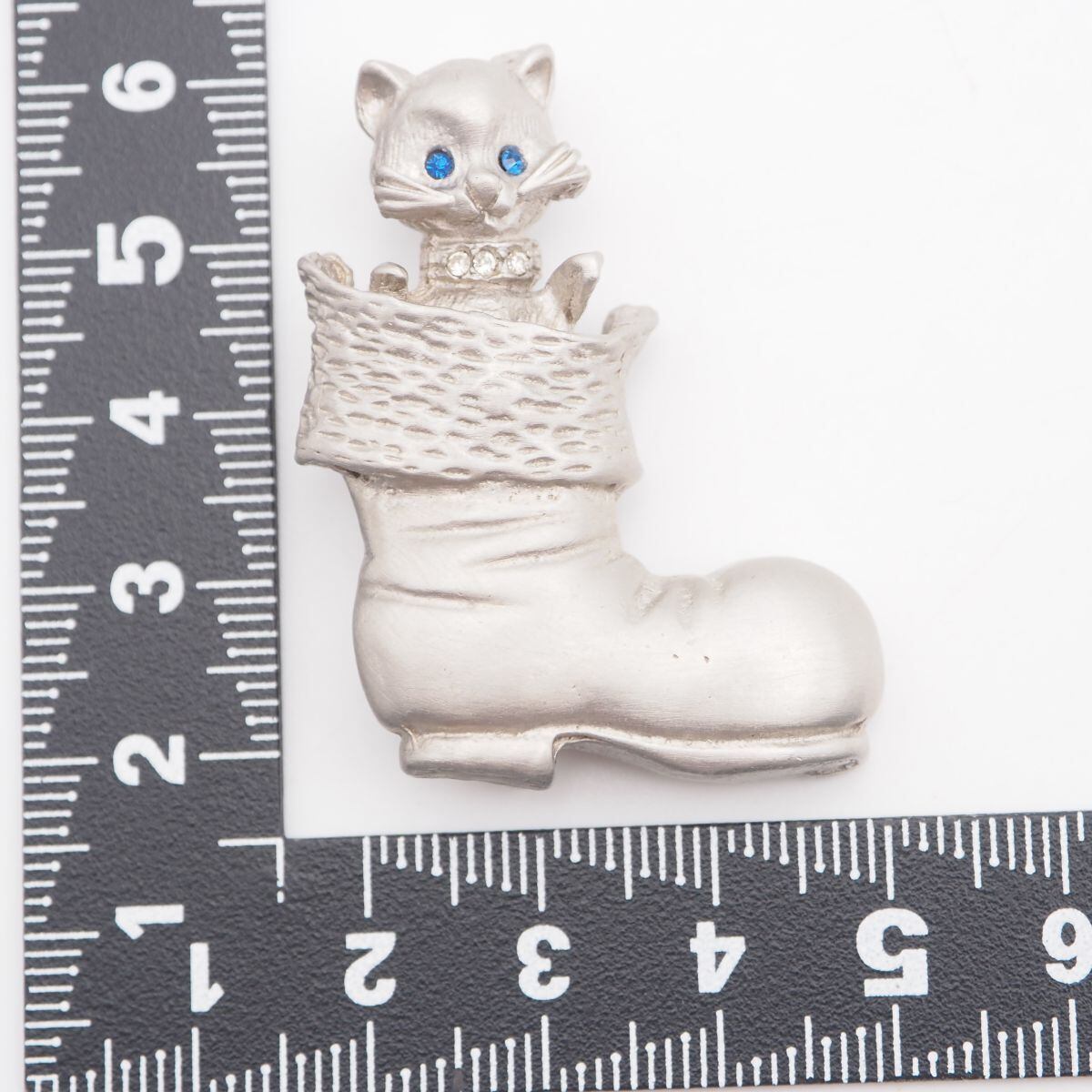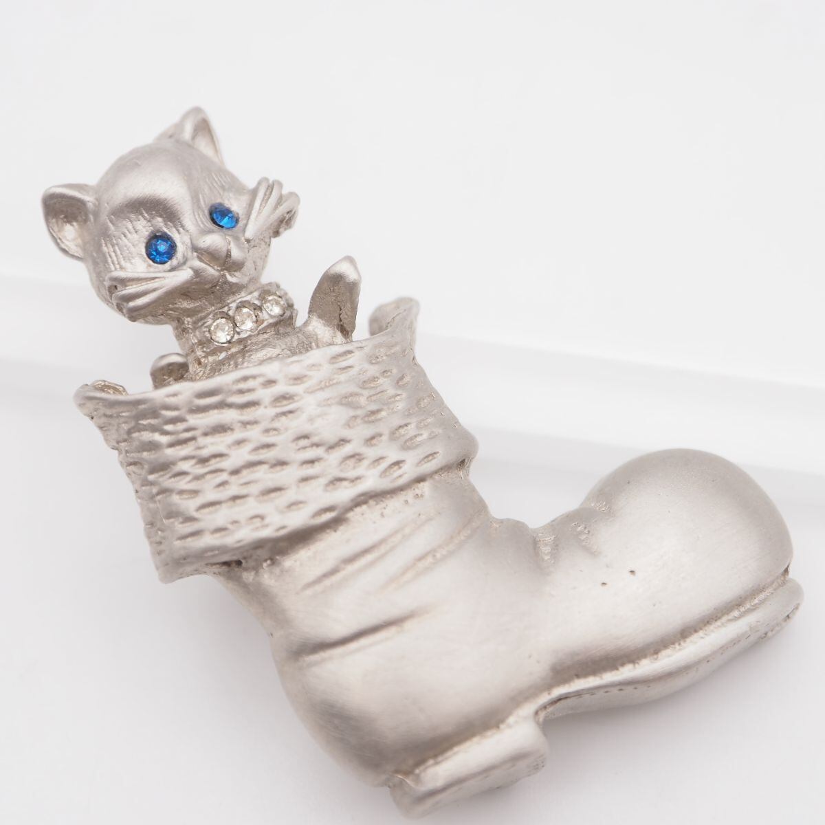 R410 ブローチ 猫 キャット ブーツ ブルーストーン風 ラインストーン シルバーカラー デザイン コスチュームジュエリー