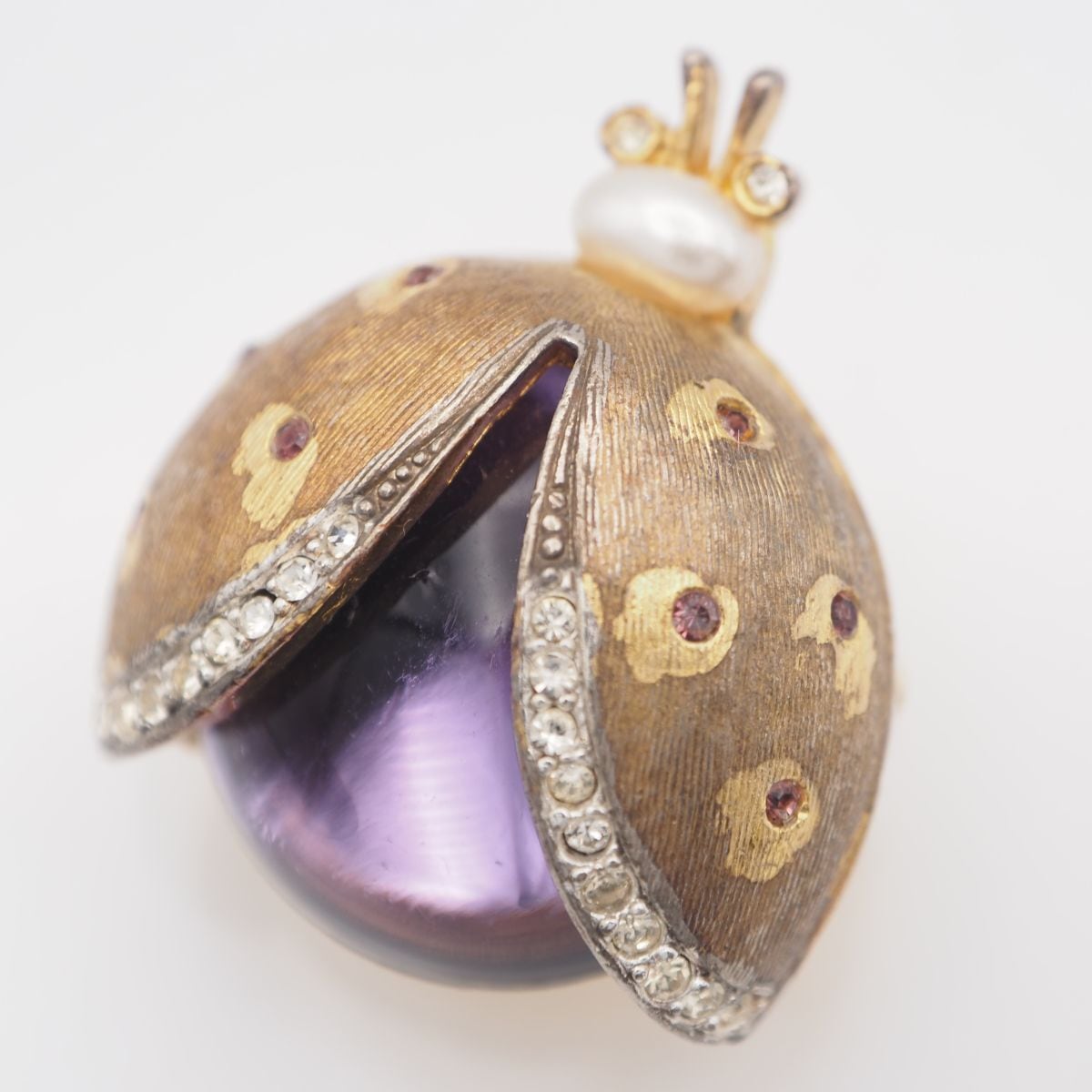 S767 CRAFT クラフト ブローチ てんとう虫 パープルストーン風 フェイクパール デザイン コスチュームジュエリー