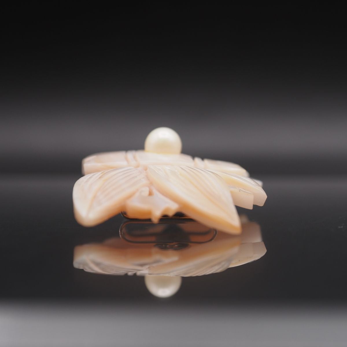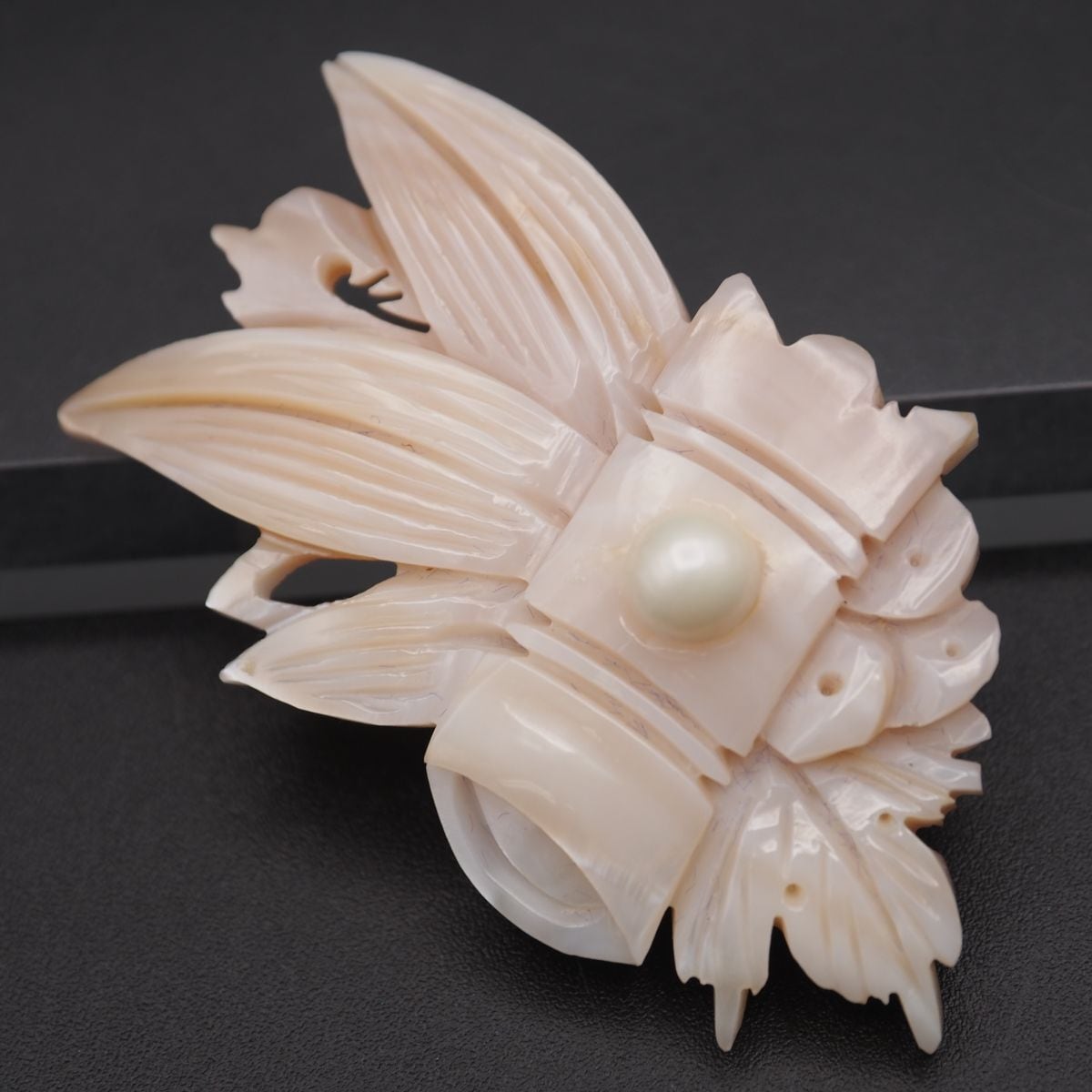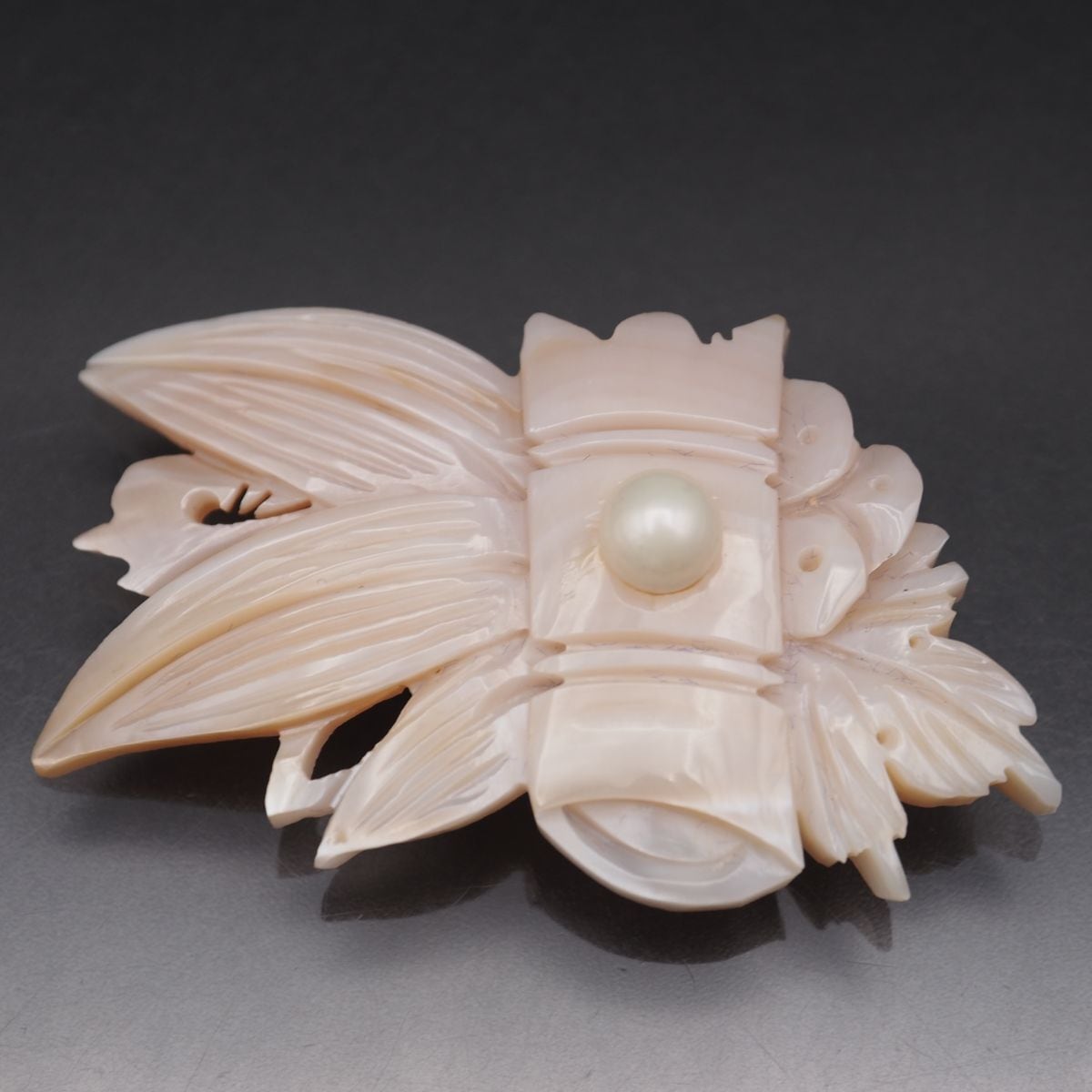 S737 シェル 帯留め デザイン 竹 笹 彫刻 フェイクパール 和装小物