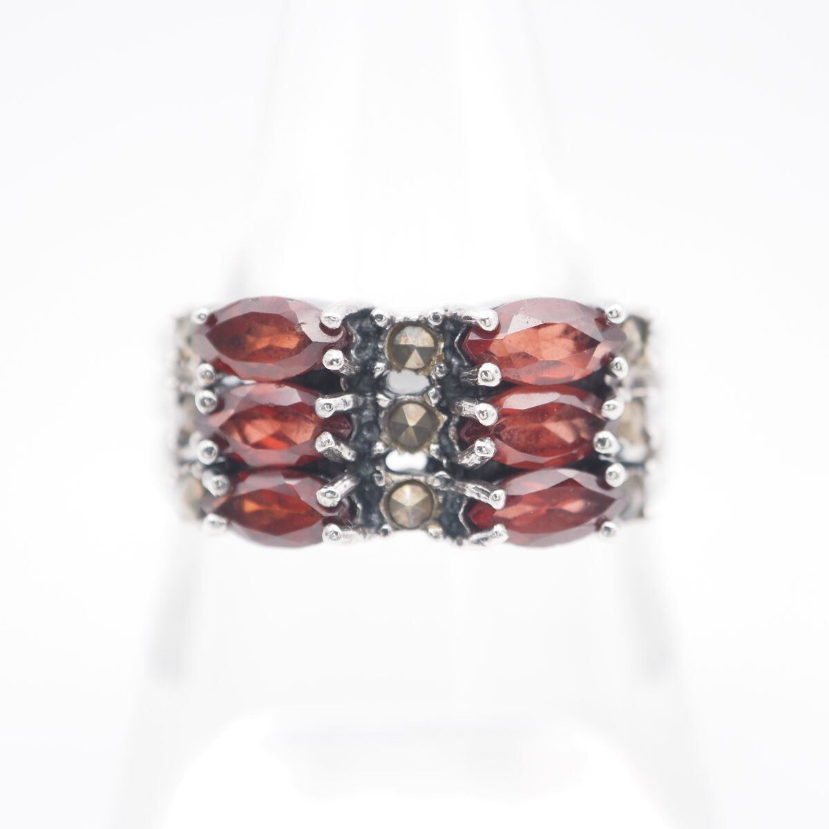 S579 ガーネット リング マーカサイト マルカジット デザイン シルバー ヴィンテージ 指輪 1月誕生石 15号