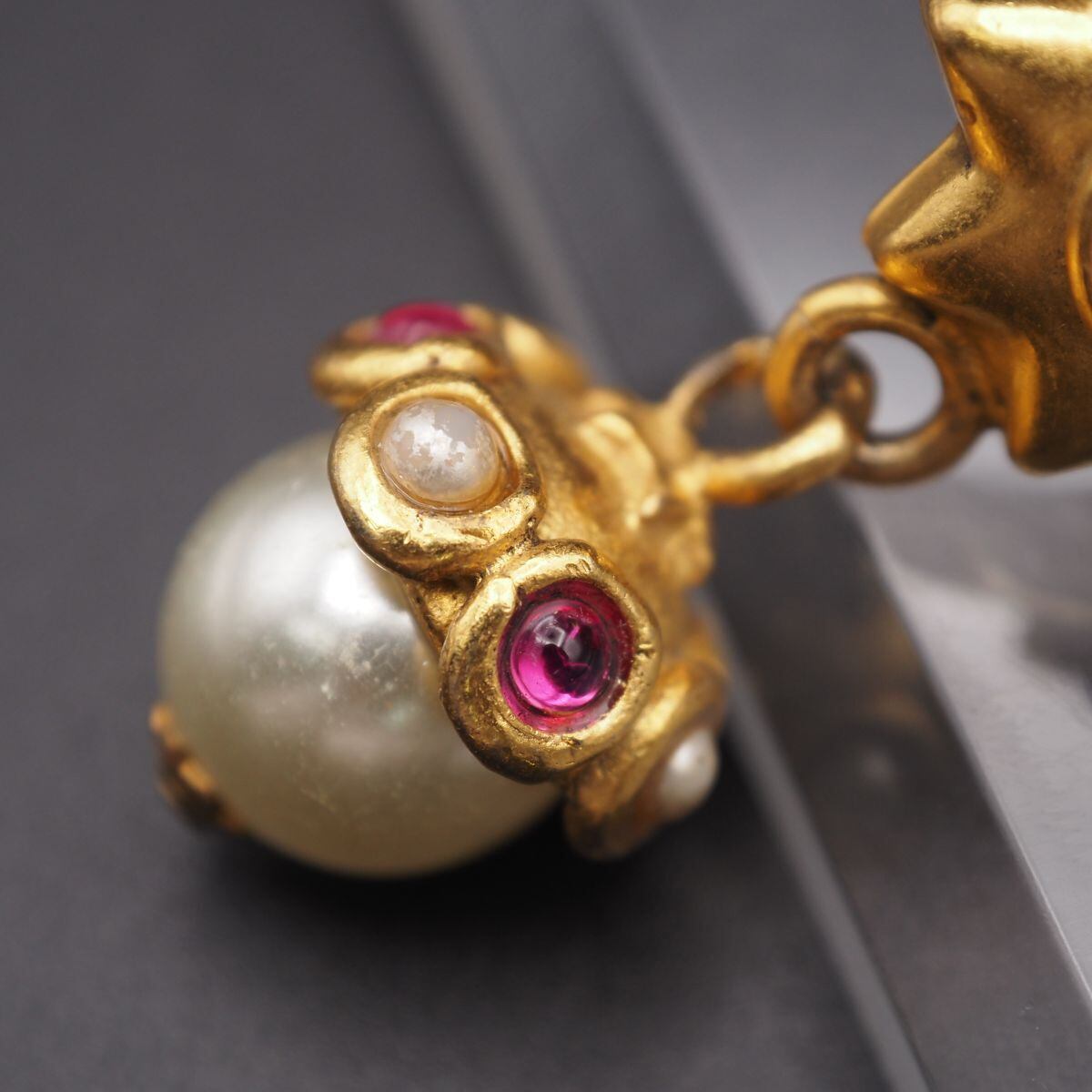 S766 ピアス 片耳のみ フェイクパール ピンクストーン風 ゴールドカラー デザイン コスチュームジュエリー