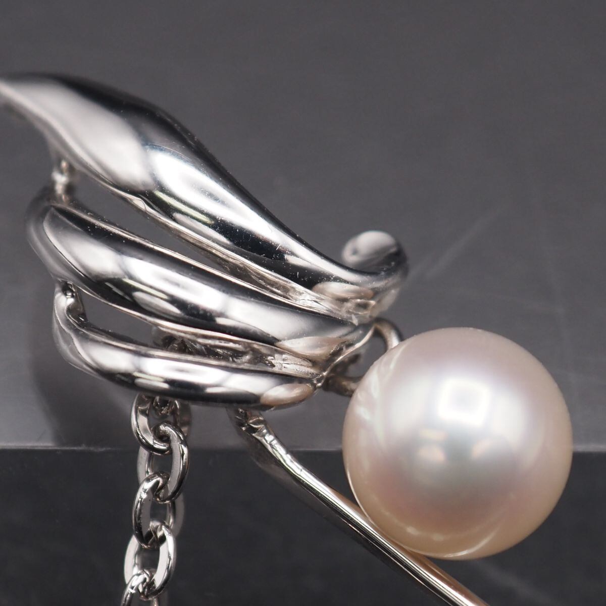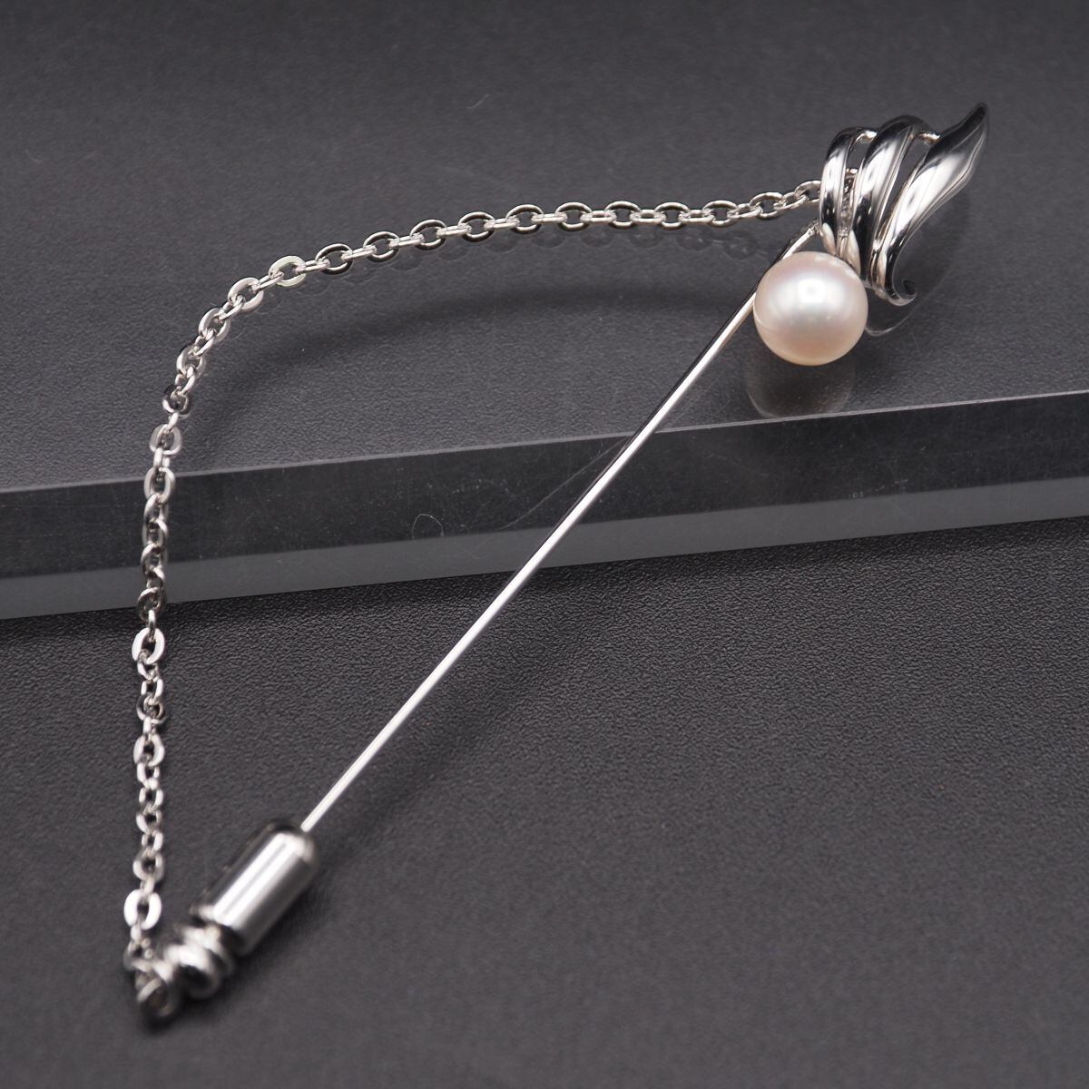 S741 本真珠 6.5mm珠 パール SILVER刻印 ピンブローチ デザイン シルバー ラペルピン コサージュ 6月誕生石