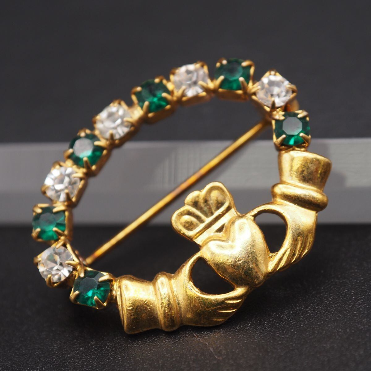S784 SOL D'OR ソル ドール ブローチ ハート ラインストーン ゴールドカラー デザイン コスチュームジュエリー