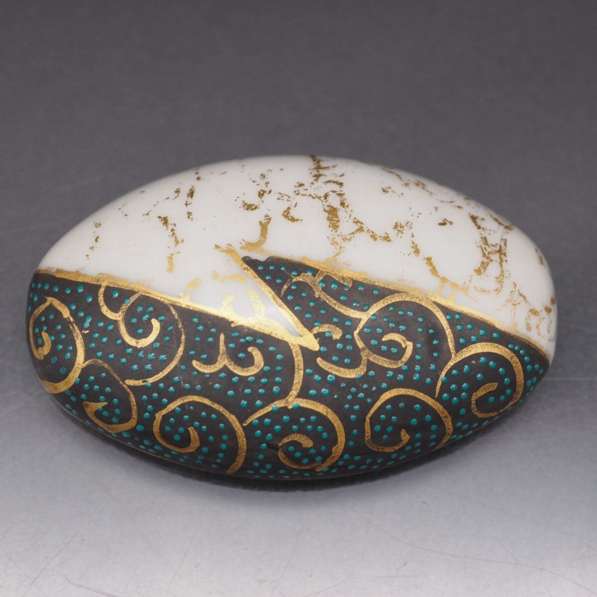 S749 九谷焼 帯留め 金彩 青粒 和装小物 陶器