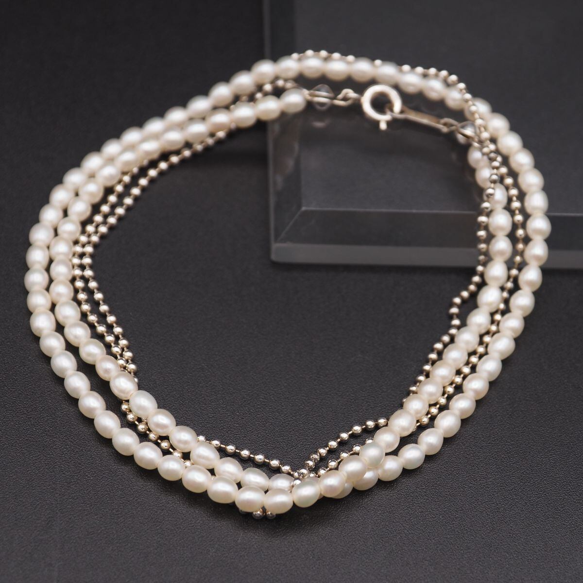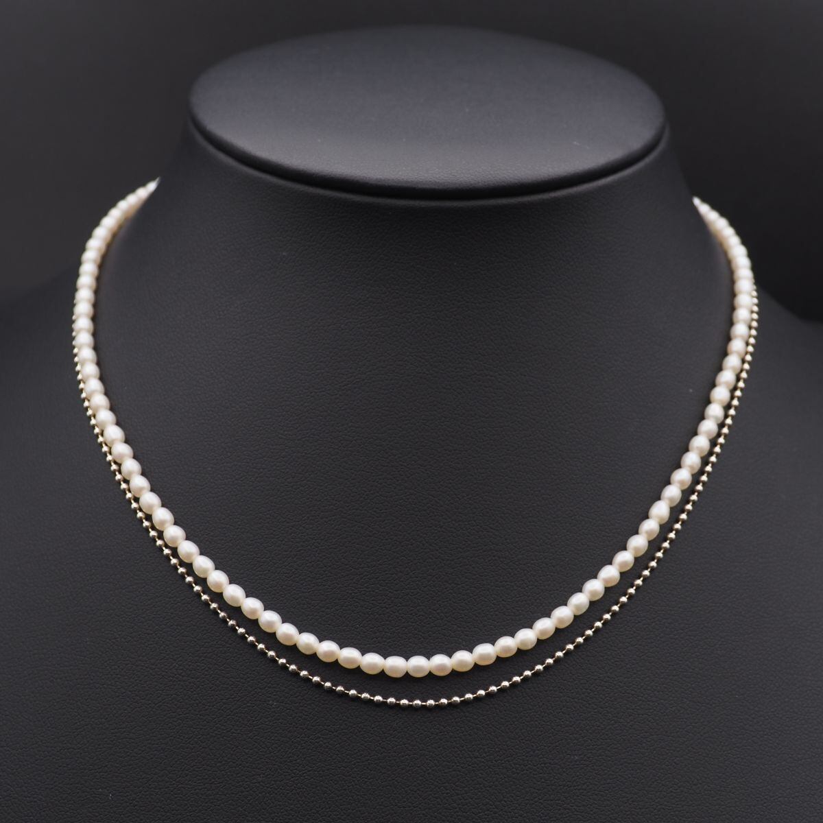 S629 淡水真珠 パール STERLING SILVER刻印 ネックレス ボールチェーン 2連 デザイン シルバー 6月誕生石