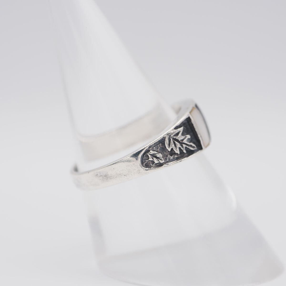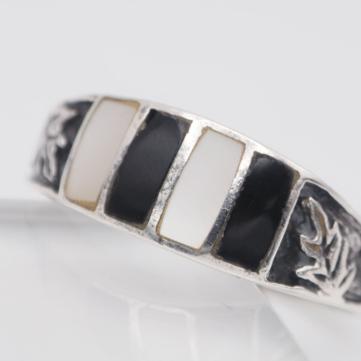 S416 シェル オニキス風 925刻印 リング 彫刻 リーフ デザイン シルバー 指輪 18号
